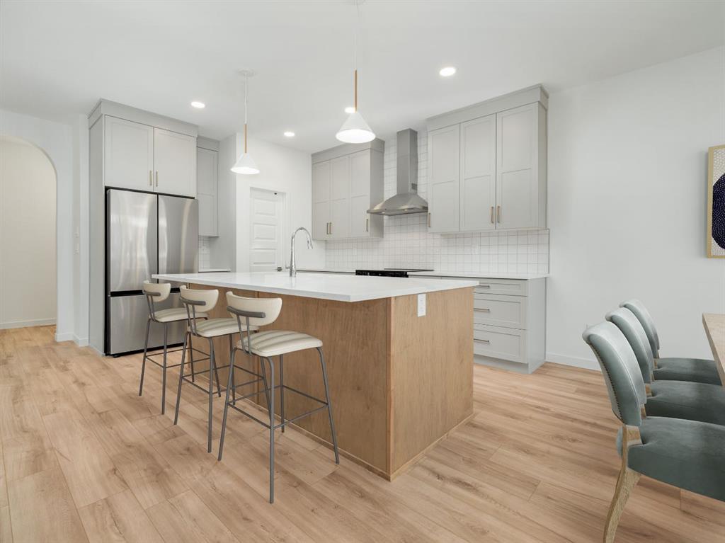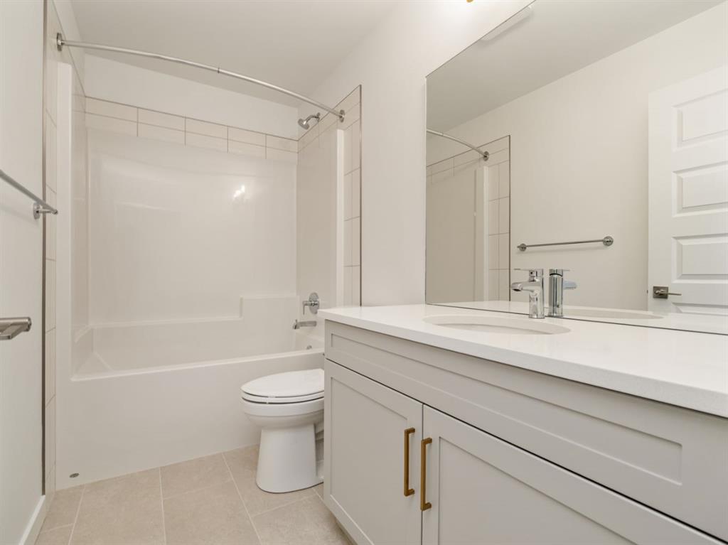 This stunning properties lot features a custom-selected exterior with upgraded accent materials, a welcoming front entry with a coat closet, a convenient mudroom and half bathroom off the garage. The spacious kitchen includes an 8-foot island, perfect for meal prep and entertaining. The living room has a cozy gas fireplace with a custom mantel detail. The open-concept design seamlessly connects the kitchen, living, and dining spaces. Upstairs, you'll find a versatile bonus room, a practical laundry room with a linen closet, two generously-sized bedrooms, and a well-appointed bathroom. The expansive primary bedroom includes a walk-in closet and a luxurious 5-piece ensuite with a free-standing bathtub. This home combines modern design with thoughtful details, offering everything you need for comfortable and stylish living. Basement is undeveloped but set up for Family room, bedroom and another full bathroom. You will also enjoy the LARGE 2 CAR GARAGE and your family will enjoy the large back yard. Home is virtually Staged. NHW. FIRST TIME BUYER! ASK ABOUT THE NEW GOVERNMENT GST REBATE. Certain restrictions apply. Located close to park and playground.