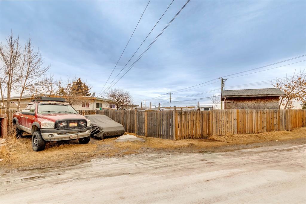 Awesome starter home with the option to add on a MASSIVE TRIPLE GARAGE OR WORKSHOP AT THE BACK OFF THE ALLEY. **HUGE PIE LOT** This cute home offers 3 beds, 1 bath and spacious basement level with daylight windows. Kitchen is sunny with lots of windows and dining room faces the big patio door. Main floor with newer laminate floors and oversized windows. Bedrooms are a good size and have South facing windows. Downstairs you will find daylight windows that let in so much light. A huge bedroom and amazing family room.Lots of storage space and there is even a window in the storage room! (Use your imagination on what you could do with this extra space!) FURNACE AND WATER TANK JUST REPLACED. Roof done about 15 years ago. The yard is a dream for dogs and children alike. If you are a car guy- you will love the option to add a massive outbuilding or garage. Double gravel parking pad and 2 sheds come with the home.