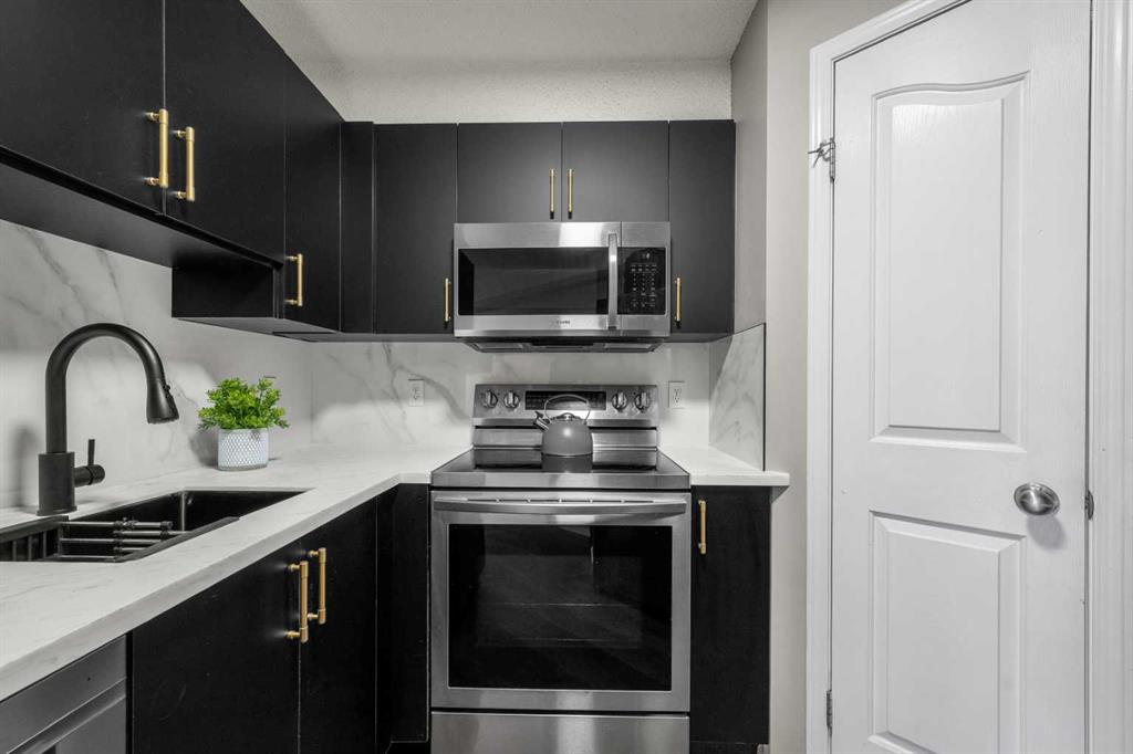 Welcome to this upgraded top-floor one-bedroom condo at 10 Prestwick Bay SE, perfectly located in the heart of McKenzie Towne. With a sunny south-facing exposure and a quiet, private balcony, this move-in-ready unit offers comfort, convenience, and exceptional value. Step inside to a thoughtfully designed open-concept layout highlighted by new luxury vinyl plank flooring throughout. The updated kitchen features new meganite countertops, ample cabinet space, and flows seamlessly into the dining area and bright living room—creating an ideal space for both everyday living and entertaining. Just off the living space, the spacious balcony provides a peaceful outdoor retreat, perfect for morning coffee or unwinding at the end of the day. The bedroom serves as a comfortable and tranquil escape, complete with a walk-in closet, while the full bathroom features a clean, modern design with a tub/shower combination. Added conveniences include in-suite laundry, extra storage, and a titled underground parking stall in a heated parkade, keeping your vehicle secure year-round. Plenty of visitor parking is also available. One of the standout features of this home is the affordable condo fees that include ALL utilities—heat, water, and electricity, offering true worry-free ownership. Situated in a highly walkable location, you’re just steps from shopping, dining, schools, playgrounds, the Prestwick Spray Park, and all the amenities along 130th Ave. With quick access to Deerfoot and Stoney Trail, commuting anywhere in the city is easy. Perfect for first-time buyers, downsizers, or investors, this bright top-floor unit with quick possession available is ready for you to move in and enjoy. Book your showing today!