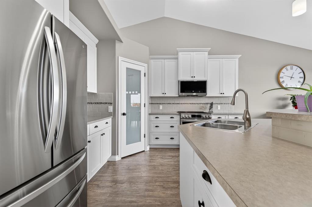 Welcome to this tastefully updated 1,400 sq ft bungalow in the community of Carstairs, conveniently located near the Grade 5–12 school and arena. A welcoming front family room greets you at the entry, while the rear of the home opens into a bright, open-concept kitchen, living, and dining area—ideal for everyday living and entertaining. The kitchen features a large central island, corner pantry, and ample space to accommodate a full dining set. Patio doors lead to a generous deck overlooking a large pie-shaped backyard with a variety of berry bushes and no neighbours behind, offering privacy and room to enjoy the outdoors. The main floor includes a comfortable primary bedroom with walk-in closet and ensuite, a second bedroom, and a full bathroom. Convenient main-floor laundry is located at the garage entry. The unfinished basement is spacious and ready for your vision, with a variety of future development options. A great opportunity to enjoy bungalow living with space to grow, close to schools, recreation, and all that Carstairs has to offer. Call your favourite local REALTOR today to have a look.