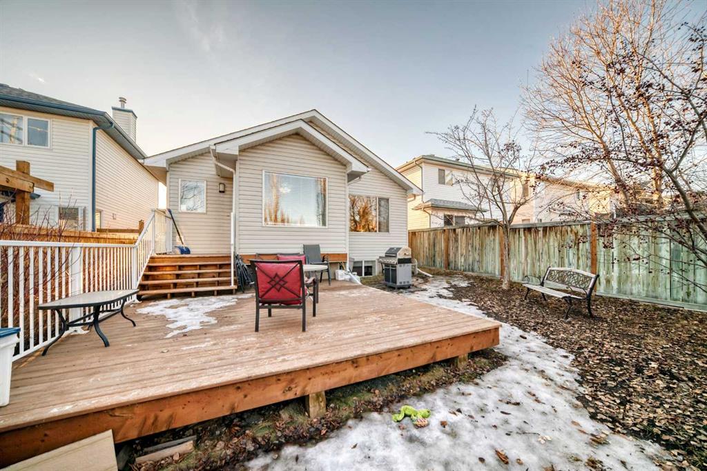 Welcome to this lovely three bedroom, two bathroom family home in the heart of friendly Tuscany - close to all the amenities of the Tuscany Club, nearby shopping, 12 Mile Coulee School, St. Basil Catholic School, and the scenic 12 Mile Coulee Park walking paths. The front entrance opens into a bright living room bathed in natural afternoon light. Up a short flight of stairs, the main living area welcomes you with a generous formal dining room leading into the wide open kitchen. It's well laid out, featuring plenty of cupboards, a corner pantry, and a moveable island with seating for two. At the back of the home, just off the kitchen, is a comfortable, morning sun-filled breakfast nook with access to the two-tiered deck and treed backyard. Rounding out this level is a spacious primary bedroom, complemented by a walk-in closet and a "cheater" ensuite door to the four piece bath (which includes both a soaker tub and separate shower). A second ample bedroom sits across the hall, offering a nice sense of privacy between the rooms. Hard flooring, baseboards, and paint have been refreshed throughout the main floor for a modern, cohesive flow. Downstairs, you'll find a massive recreation room with a corner gas fireplace to cozy up in front of. A large third bedroom and an additional full bathroom provide even more living space, while the sizable storage, mechanical, and laundry area ensures there's a place for everything. Complete with a double attached garage, this home is a true gem. Don't wait to see it!