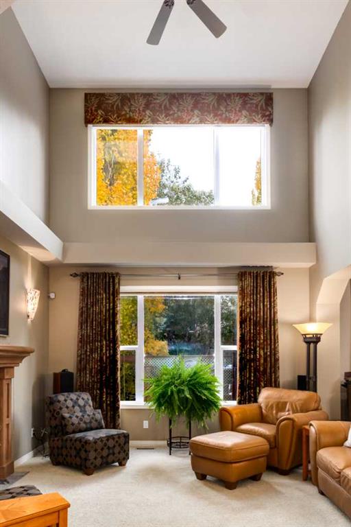 Tucked into the coveted lower Valley Ridge community, this impeccably cared-for home delivers a rare blend of refined style, thoughtful upgrades, and everyday livability just moments from the Valley Ridge Golf Course, river pathways, and the Calgary West Farmers Market. Striking curb appeal and lush landscaping set the tone, while the pristine east-facing backyard offers a private escape complete with a sun-shaded patio, privacy screens, and a beautifully maintained garden, ideal for quiet mornings or relaxed evenings outdoors. Inside, a welcoming and spacious foyer leads to a light-filled living room with soaring 18’ two-storey ceilings and a gas fireplace, creating an immediate sense of warmth and scale. The open layout flows effortlessly into the dining area and a well-equipped kitchen featuring ample cabinetry, stainless steel appliances (including a new microwave in 2025 and brand new refrigerator in 2026), breakfast bar, and a large walk-in pantry, while a tucked-away home office and functional mudroom add everyday ease. The insulated, drywalled double attached garage is finished with an epoxy floor and hot and cold water taps, perfect for year-round use. Upstairs, sunlight pours in through the open-to-below design and oversized skylight, while three generously sized bedrooms each offers their own walk-in closets. The primary suite feels like a private retreat, showcasing vaulted ceilings, south exposure, a spacious walk-in closet, and five-piece ensuite with dual vanities, a soaker tub, and separate shower. A full four-piece bath and a large laundry room with built-ins complete the upper level. The fully developed lower level expands your living space with multiple entertaining zones, ideal for movie nights, games, workouts, or quiet reading by the cozy fireplace along with a charming library nook featuring floor-to-ceiling built-ins. Additional upgrades include a water softener, new hot water tank (2024), fresh main-floor paint (2025), new washer and dryer (2025), and a newly resealed aggregate driveway (2025). With Valley Ridge’s extensive trail system just outside your door and nearly 20 years of prideful ownership behind it, this home offers a lifestyle defined by comfort, connection, and enduring value. Now ready to welcome its next chapter, this is Valley Ridge living at its finest.
