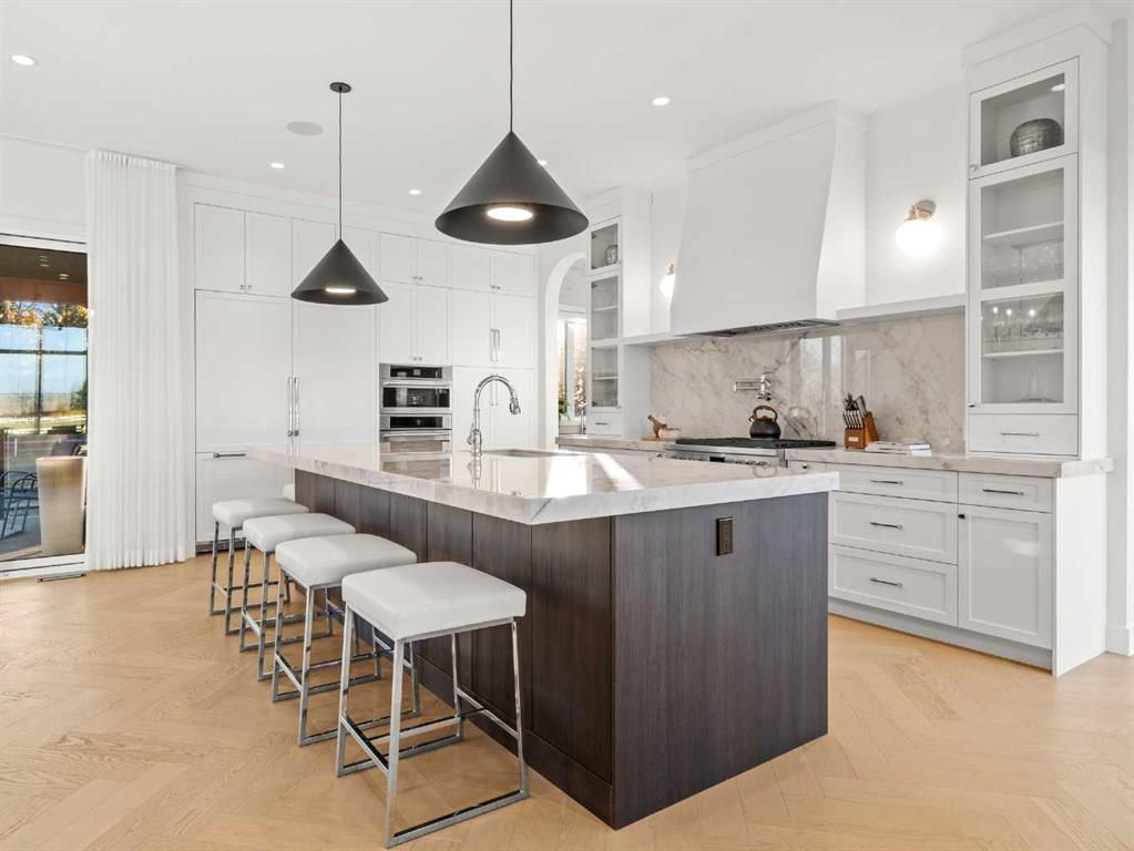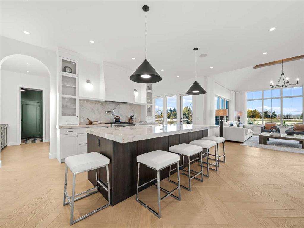 OPEN HOUSE - Sunday (November 2) from 1 pm till 3 pm! Nestled in the rolling landscapes just outside Southwest Calgary, this stunning custom-built luxury estate offers the perfect balance between serene country living and urban convenience. Located on a 2.4-acre private lot in a quiet cul-de-sac surrounded by other executive homes, this brand-new residence combines timeless craftsmanship, elegant design, and modern functionality, just 3 minutes from Spruce Meadows and 30 minutes from downtown Calgary. With over 5,500 sq. ft. of finished living space, this home was built with meticulous attention to detail. Step inside to discover a bright, open layout filled with natural light, soaring ceilings, and elegant arched doorways that bring classic charm into the modern design. The main living area features large picture windows with mountain views, a beautiful fireplace centrepiece, and seamless flow into the dining area and spacious terrace, perfect for entertaining or relaxing while enjoying the peaceful scenery. The chef-inspired kitchen is a true showpiece, boasting an oversized island, Brazilian porcelain countertops, custom cabinetry, and Italian Fulgor Milano appliances. A fully equipped butler’s pantry adds functionality and extra storage, while the adjoining mudroom connects to a triple attached garage designed for convenience and versatility. The main-floor primary suite feels like a private retreat with vaulted ceilings, a fireplace, and a private covered deck for morning coffee or evening wine. The spa-like ensuite features a freestanding tub with mountain views, a glass-enclosed steam shower, and a massive walk-in closet with custom built-ins. Upstairs, a spectacular bonus room above the garage includes vaulted ceilings, a full bathroom, and a private west-facing balcony, ideal as a media room, guest suite, or entertainment area. The walkout basement offers incredible natural light and a flexible open layout, complete with a wet bar, a large family area, three spacious bedrooms (each with walk-in closets), and two full bathrooms. Step directly outside to a covered patio and your blank canvas backyard, ready for your dream landscape, pool, or outdoor kitchen. Every inch of this property reflects quality, craftsmanship, and thoughtful design—from heated tile floors and custom millwork to the seamless blend of comfort and sophistication throughout. If you’ve been searching for a home that offers privacy, space, and elegance without sacrificing proximity to the city, this one-of-a-kind estate is it.