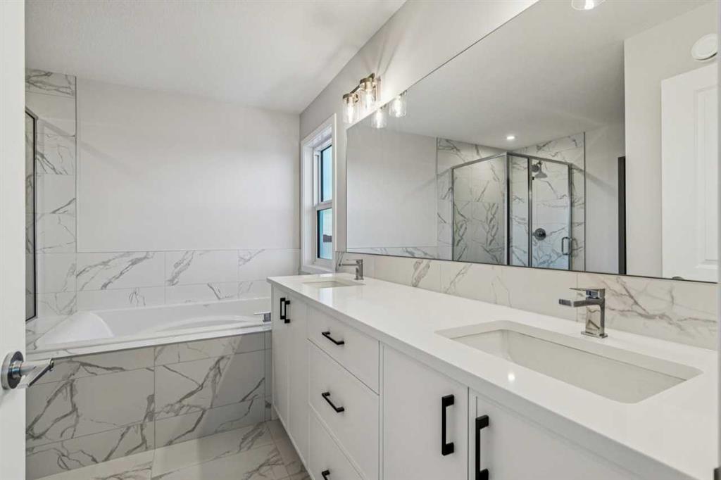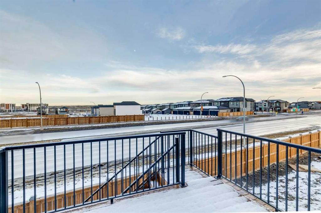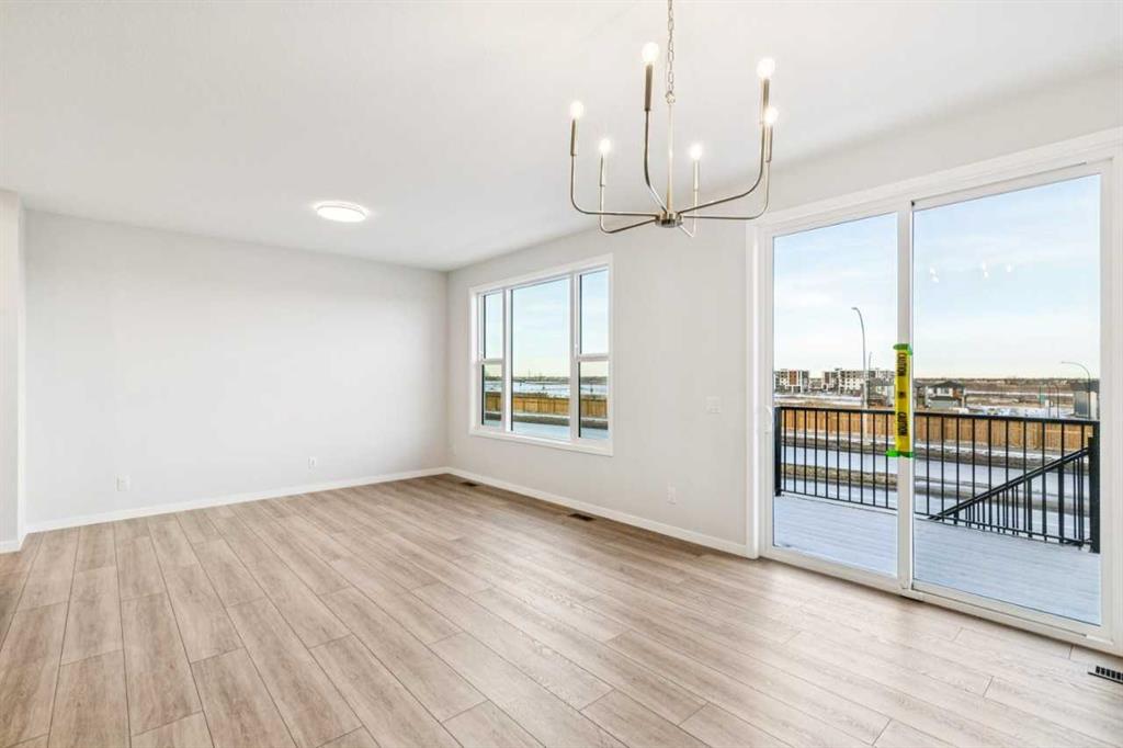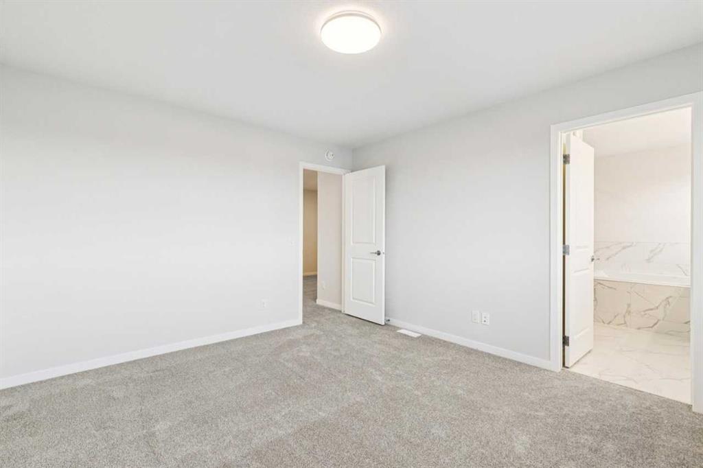 This walkout home offers a bright, practical layout designed for everyday living and entertaining. The main floor includes a front flex room and an open concept living, dining, and kitchen area anchored by a fireplace. The kitchen features tight to ceiling cabinetry and connects seamlessly to the main living space. Added windows throughout enhance natural light, and 8 ft main floor doors add to the open feel. Upstairs, four bedrooms are arranged around a central bonus room with light from the stairwell window. The primary bedroom includes an upgraded five-piece ensuite with a soaker tub, tiled shower, dual sinks, and a walk in closet. Additional upgrades include railing throughout the home, a large walkout deck with stairs to the backyard, appliance allowance to select appliances that fit your lifestyle, and a tankless water heater. The home sits on a 108 ft long lot with no neighbours behind, providing added privacy and space. The walkout basement is roughed in for future potential development, offering long term flexibility. Never lived in and comes with full new home warranty coverage, this property represents a rare final phase opportunity in Belmont.