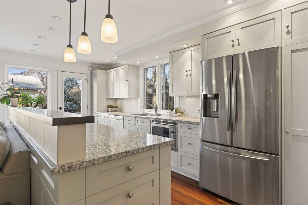 Nestled on a beautiful tree-lined street in the heart of Elbow Park, this charming character home offers timeless elegance and exceptional livability just steps from the Glencoe Club, top schools, river pathways, Mission, and an array of amenities. Originally built in 1920, the residence has been lovingly maintained and thoughtfully updated over the years, reflecting true pride of ownership while preserving its architectural integrity. Boasting over 3,600 sq. ft. of total living space, the home welcomes you with stunning curb appeal and a quaint front porch, perfect for morning coffee or evening unwinding. Inside, rich hardwood floors span the main level, where natural light fills the formal living and dining rooms, anchored by a beautiful fireplace that creates an inviting setting for entertaining. The spacious family room, complete with a second gas fireplace, opens seamlessly to the kitchen, featuring stainless steel appliances and functional flow for everyday living. A rare and highly desirable main floor primary retreat offers comfort and privacy, complete with its own ensuite. Upstairs, you will find two additional bedrooms with a shared bath, ideal for family or guests. The fully developed lower level expands the living space with yet another fireplace, a large games and media room, an additional bedroom or optional gym, its own ensuite, and ample storage throughout. Practicality meets charm with a mudroom that leads to a covered breezeway, connecting to the double detached garage and dedicated workshop, perfect for hobbyists or additional storage needs. Surrounded by beautifully curated hard and soft landscaping, the front and backyard spaces offer both serenity and functionality, an ideal setting for outdoor entertaining or family enjoyment. A rare opportunity to own a character home of this scale and condition in one of Calgary’s most prestigious inner city communities.