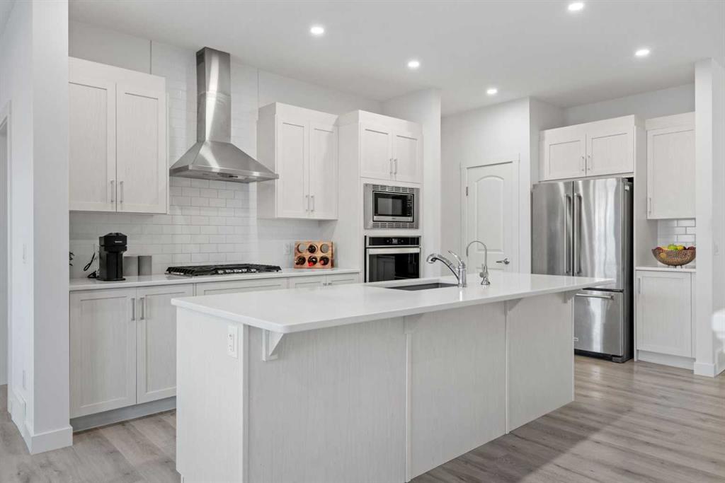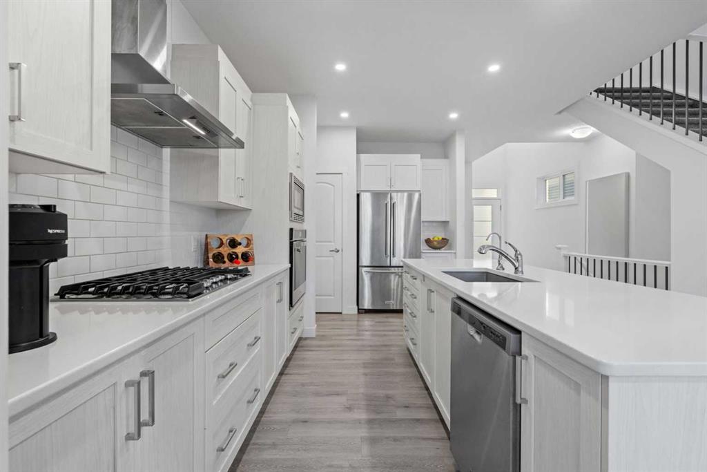 ** Open House: Feb Sat 7th & Sun 8th 1:00-4:00 pm.** Welcome to this elegant and modern fully finished walkout basement home in the heart of Sage Hill. A spacious and welcoming foyer sets the tone the moment you step inside, with clear sightlines guiding you through to the bright, open-concept main living area at the rear of the home. Expansive windows line, filling the space with natural light throughout the day. The main floor features 9-foot ceilings, pot lights throughout, and a dedicated den/office, ideal for remote work or a quiet study. At the heart of the home is a chef-inspired kitchen that blends style and practicality, showcasing a large central island for gathering, a chimney-style hood fan, built-in wall oven and microwave, and a gas cooktop. The adjacent nook opens onto a deck with a gas BBQ line, extending your living space outdoors. Completing the main level are a convenient half bath and a functional mudroom with added storage shelving, connecting directly to the double attached garage with overhead storage. Upstairs, upgraded metal railings lead to a thoughtfully designed second floor featuring three bedrooms, a spacious bonus room, and a well-appointed main bathroom. The luxurious primary suite is a private retreat, offering a spa-like ensuite with a separate soaker tub, stand alone shower, dual vanities, and a generous walk-in closet with direct access to the separate laundry room, complete with a sink and extra shelving for storage. The professionally finished walkout basement adds outstanding flexibility, featuring a bedroom, full bathroom, office, recreation/exercise room, and ample storage, with direct access to a concrete patio beneath the deck. Additional upgrades include Triple panes window, central air conditioning, a water softener, water filtration system, and a outside hot water tap. Major recent upgrades include a new roof(2025), new siding(one side, 2025), and a new garage door (2025). Ideally located close to playgrounds, this beautifully upgraded home combines modern elegance, thoughtful design, and exceptional functionality—making it a standout opportunity in one of NW Calgary’s most desirable communities. Check out the virtual!