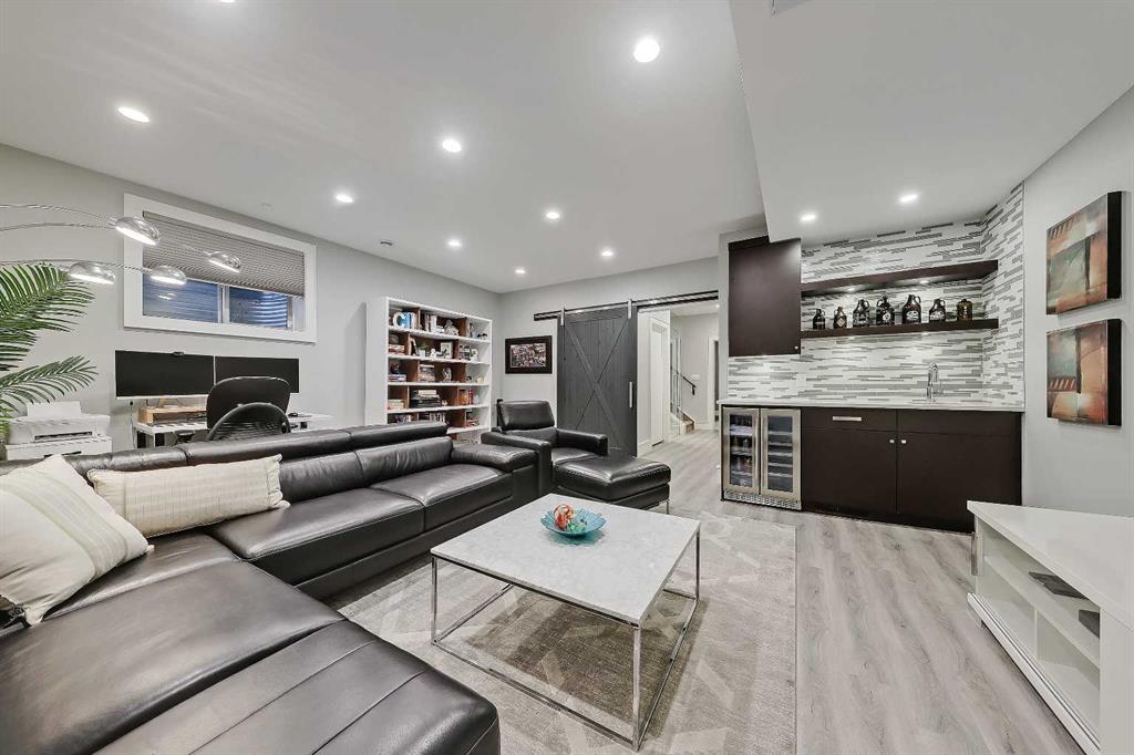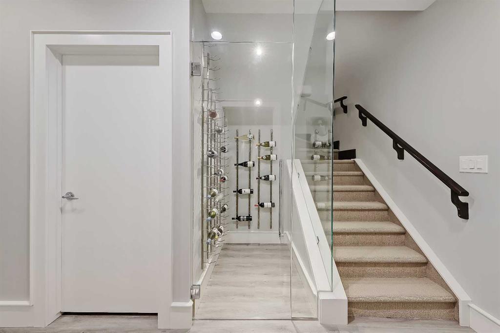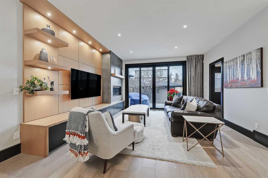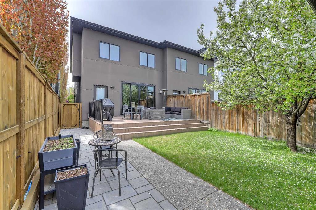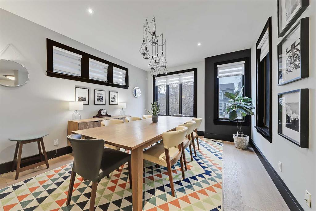 STYLE, COMFORT, AND LOCATION. Experience the best of Marda Loop living in this gorgeous semi-detached home located in the highly sought-after Richmond community. Just a quick 10-min walk away from shops, amenities, fitness studios, restaurants, and more! Families will appreciate the proximity to schools, parks, and playgrounds. Recently renovated and meticulously maintained, this home boasts over 2,700 sq ft of developed living space, 4 beds and 3.5 baths, a spacious basement, a private fenced backyard, and a double detached garage. This is a perfect opportunity for anyone seeking the best of inner-city living. Step inside through the oversized custom fibreglass front door into the welcoming formal front foyer with tiled flooring and a large closet. The main floor features engineered hardwood flooring throughout, leading to the bright formal dining room, which offers plenty of room for a full furniture arrangement. The modern kitchen features ample cabinetry and counter space, quartz counters, and a central island with bar seating, dual basin stainless steel sinks with a garburator, and a full stainless steel appliance package. The adjacent dining nook with an accent stone wall is a great spot for casual meals. The expansive living room boasts a custom built-in entertainment center with display shelves and pull-out drawers, and a tiled gas fireplace. High-end Pella glass sliding doors lead to the rear deck and backyard. Just off the living room is a convenient tiled mudroom with a pocket door, built-in storage, hooks and access to the backyard. Neatly tucked away, a 2pc powder room with tiled flooring completes the main floor. The upper floor showcases an impressive primary bedroom with large windows, a private balcony, a walk-in closet, and a luxurious 5pc ensuite. The ensuite features a quartz vanity with dual sinks and storage, a drop-in soaker tub with a handheld shower wand and tile surround, and a fully tiled stand-up shower. Two additional bedrooms with oversized windows and large closets, a main 4pc bathroom, and a tiled laundry room provide comfort and convenience. Downstairs, the fully developed basement features luxury vinyl flooring and in-floor heating throughout. A modern barn door opens into the massive rec room, which features a wet bar with a beverage fridge, quartz counters and tiled backsplash, and shelving. Down the hall, you’ll find a wine room with 10 mm glass enclosure, a guest bedroom with a walk-in closet, and a sleek 4pc bathroom. Outside, enjoy a composite deck, stone patio, grassy area, gas line for BBQs, and an insulated, drywalled, double-detached garage. Additional features include a high-efficiency furnace, central A/C, new roof (2024), new front door (2023), new main-floor sliding doors (2023), and a new fridge (2024). Don't miss out on this exceptional property that offers style, functionality, and an unbeatable location. Schedule your showing today and discover the best of Marda Loop living!