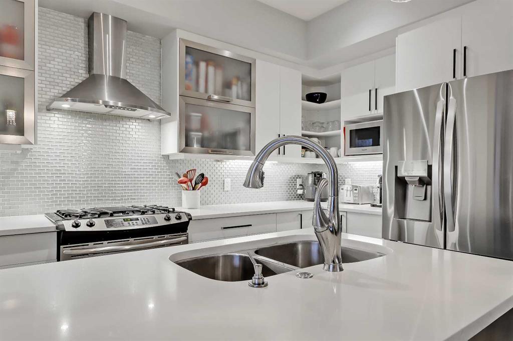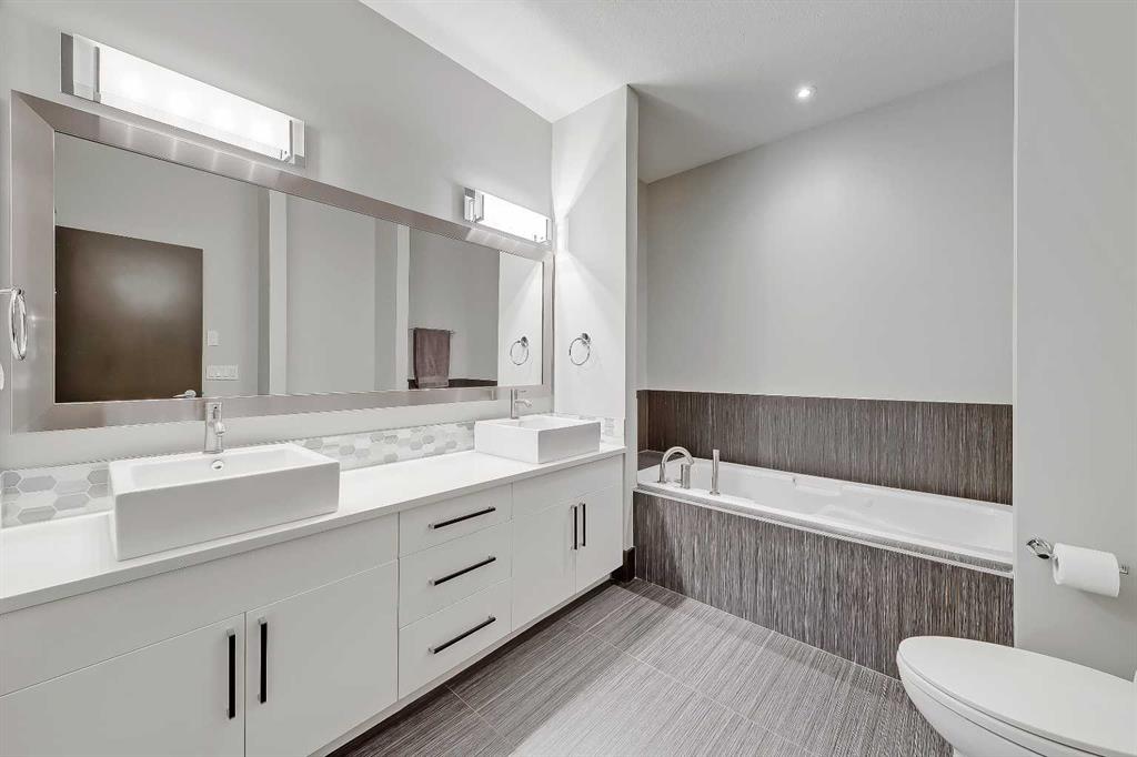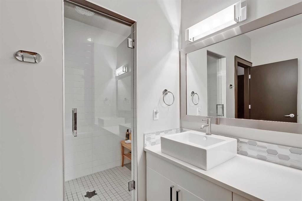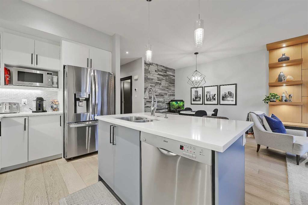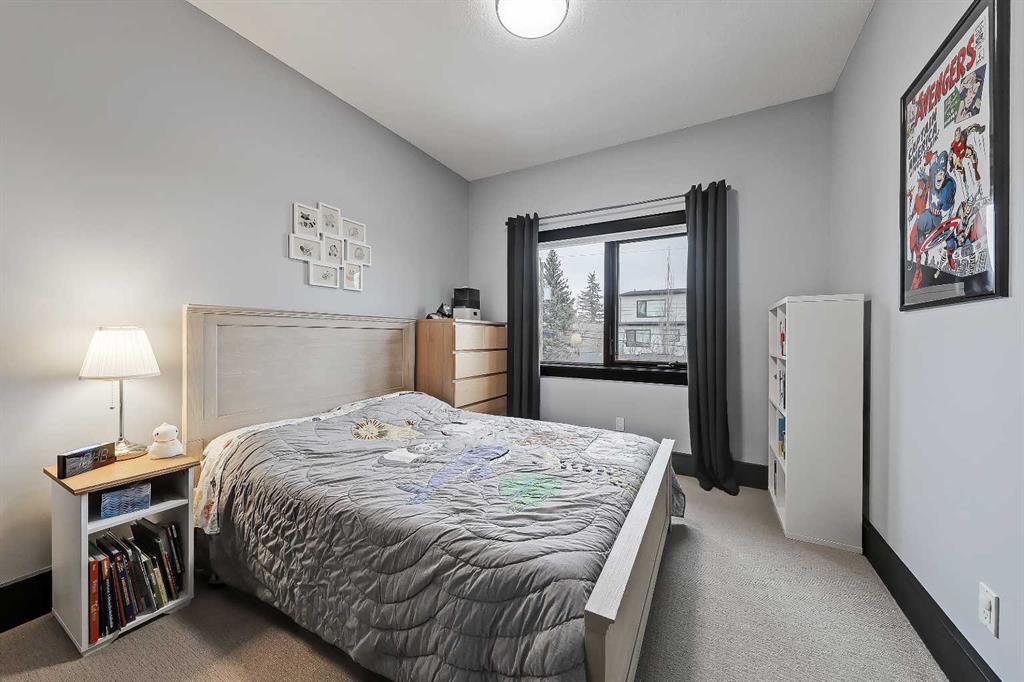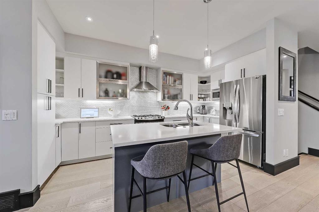 STYLE, COMFORT, AND LOCATION. Experience the best of Marda Loop living in this gorgeous semi-detached home located in the highly sought-after Richmond community. Just a quick 10-min walk away from shops, amenities, fitness studios, restaurants, and more! Families will appreciate the proximity to schools, parks, and playgrounds. Recently renovated and meticulously maintained, this home boasts over 2,700 sq ft of developed living space, 4 beds and 3.5 baths, a spacious basement, a private fenced backyard, and a double detached garage. This is a perfect opportunity for anyone seeking the best of inner-city living. Step inside through the oversized custom fibreglass front door into the welcoming formal front foyer with tiled flooring and a large closet. The main floor features engineered hardwood flooring throughout, leading to the bright formal dining room, which offers plenty of room for a full furniture arrangement. The modern kitchen features ample cabinetry and counter space, quartz counters, and a central island with bar seating, dual basin stainless steel sinks with a garburator, and a full stainless steel appliance package. The adjacent dining nook with an accent stone wall is a great spot for casual meals. The expansive living room boasts a custom built-in entertainment center with display shelves and pull-out drawers, and a tiled gas fireplace. High-end Pella glass sliding doors lead to the rear deck and backyard. Just off the living room is a convenient tiled mudroom with a pocket door, built-in storage, hooks and access to the backyard. Neatly tucked away, a 2pc powder room with tiled flooring completes the main floor. The upper floor showcases an impressive primary bedroom with large windows, a private balcony, a walk-in closet, and a luxurious 5pc ensuite. The ensuite features a quartz vanity with dual sinks and storage, a drop-in soaker tub with a handheld shower wand and tile surround, and a fully tiled stand-up shower. Two additional bedrooms with oversized windows and large closets, a main 4pc bathroom, and a tiled laundry room provide comfort and convenience. Downstairs, the fully developed basement features luxury vinyl flooring and in-floor heating throughout. A modern barn door opens into the massive rec room, which features a wet bar with a beverage fridge, quartz counters and tiled backsplash, and shelving. Down the hall, you’ll find a wine room with 10 mm glass enclosure, a guest bedroom with a walk-in closet, and a sleek 4pc bathroom. Outside, enjoy a composite deck, stone patio, grassy area, gas line for BBQs, and an insulated, drywalled, double-detached garage. Additional features include a high-efficiency furnace, central A/C, new roof (2024), new front door (2023), new main-floor sliding doors (2023), and a new fridge (2024). Don't miss out on this exceptional property that offers style, functionality, and an unbeatable location. Schedule your showing today and discover the best of Marda Loop living!