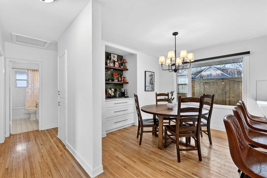 Welcome to this beautiful updated bungalow that blends preserved character with extensive modern renovations, ideally located on a quite street and set on a large corner lot in a mature , highly desirable neighbour. Offering exceptional indoor and outdoor living, this move-in-ready home is perfectly suited for families, professionals and those who love to entertain. The functional layout includes 3 bedrooms + 2 baths with 2 bedrooms up + 1 down allowing for a primary suite on either level. Original character doors and classic archways have been thoughtfully maintained adding warmth and architectural charm while complementing the modern updates. The bright main living space flows seamlessly into a custom kitchen featuring featuring quartz countertops custom cabinetry, spacious peninsula with seating for 5, gas range, stainless steel appliances, built-in coffee bar, and custom kitchen bench seating. Quartz counters in both baths pair with the tasteful black fixtures + updated finishing. Fully redeveloped basement with custom built in entertainment centre (ideal for movie nights + hosting guests), new plush carpeting + new windows. Extensive upgrades: new furnace, hot water tank, water softener, electrical, plumbing, attic insolation, gutters, upgrade tile, refinished hard wood floors, new window coverings + top quality materials throughout. Garage and storage options are exceptional, with a single attached garage + carport for a mud room, yoga and storage area. A double detached garage providing room for vehicles and equipment. Outdoor living is a true highlight with tasteful landscaping, private side yard framed by mature tree and perennials, professionally restored exterior fireplace + cabana area for entertaining. Expansive front grassed lawn on this corner lot with additional green space to enjoy. Ideally located minutes from downtown, walking distance to Marda Loop + close to Mount Royal University.This home offers a rare combination of character, modern upgrades, flexible living space + an unbeatable inner city location.