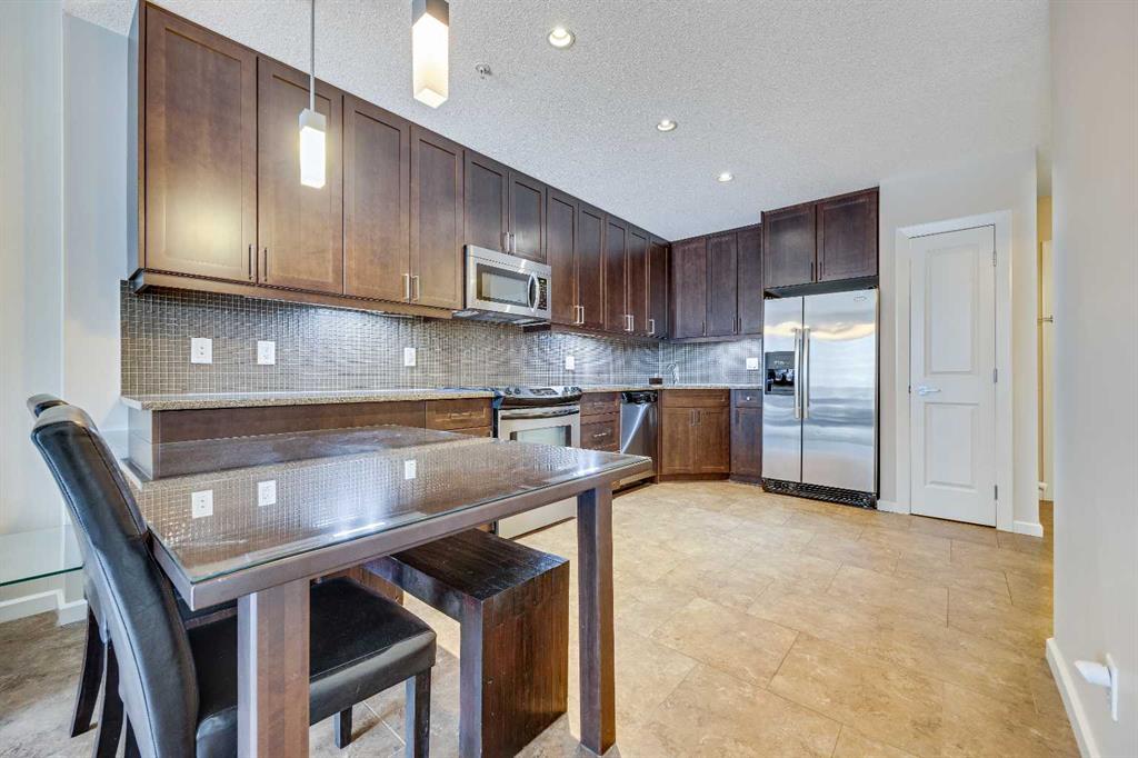 1 BEDROOM | 1 BATHROOM | 573 SQ FT | OPEN FLOOR PLAN | FULLY FURNISHED | TITLED UNDERGROUND PARKING | AMENITY RICH BUILDING | Furnishings are available for inclusion in the purchase price. Located in the sought-after Nuera building in the heart of the Beltline, this stylish 1-bedroom, 1-bathroom condo offers 573 sq. ft. of modern living space. This home comes complete with all furniture, including a TV, Dyson vacuum and everything to take the keys and move right in! The open-concept layout features a spacious living area with large windows and an east-facing balcony, perfect for enjoying your morning coffee. The kitchen boasts granite countertops, contemporary cabinetry, a breakfast bar, and stainless steel appliances. The generously sized primary bedroom includes a walk-in closet with custom organizers and large windows allowing in an abundance of natural light. Convenience is key with in-suite laundry, titled underground parking, and an assigned storage locker. Nuera offers top-tier amenities, including a fitness centre, party room, bicycle storage, secured parking, and visitor parking. This adult only, pet-friendly, professionally managed building is just steps from parks, shopping, dining, and Calgary’s downtown core. Ideal for first-time buyers or investors—book your showing today!