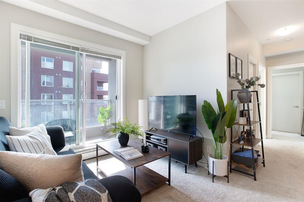 Experience the perfect harmony of modern sophistication and effortless living in this beautifully updated, south-facing sanctuary. Spanning a generous 847 square feet, this two-bedroom, two-bathroom condo is a masterclass in functional design, maximizing every inch to create an atmosphere that feels both expansive and intimate. Bathed in natural light from its coveted southern exposure, the open-concept layout invites you into a bright, airy living area that flows seamlessly onto a private, sun-drenched balcony—the ultimate setting for morning coffee or evening reflection. The heart of this residence is a chef-inspired kitchen that balances warmth with high-end style. Featuring rich walnut cabinetry, contemporary tiling, and a massive central island with seating for four, it serves as a premier hub for weekend entertaining or quiet weeknight meals. The floor plan is thoughtfully arranged with privacy as a priority; the primary suite acts as a true retreat, offering a large window that frames the sun and a dedicated three-piece ensuite. A spacious secondary bedroom and a full four-piece main bathroom provide ample room for guests, a home office, or a growing family, while the convenience of in-suite laundry ensures your daily routine remains streamlined. Beyond the walls of this stunning unit, the location on East Lake Boulevard is truly unparalleled. Imagine a vibrant community where your front door is situated merely steps from the premier amenities of Genesis Place. Whether you are heading to the gym, the pool, or the skating rink, world-class recreation is right at your fingertips. The lifestyle appeal continues with Bert Church High School, outdoor hockey rinks, tennis courts, and diverse shopping destinations all within easy walking distance. Meticulously maintained and entirely move-in ready, this modern residence offers an incredible opportunity for first-time buyers entering the market, downsizers seeking a simpler pace, or savvy investors eyeing a high-demand district. This isn’t just a condo; it’s a gateway to a convenient, active, and luminous future. Don’t allow this rare find to pass you by—come experience the charm of this exceptional property for yourself and schedule your private viewing today!