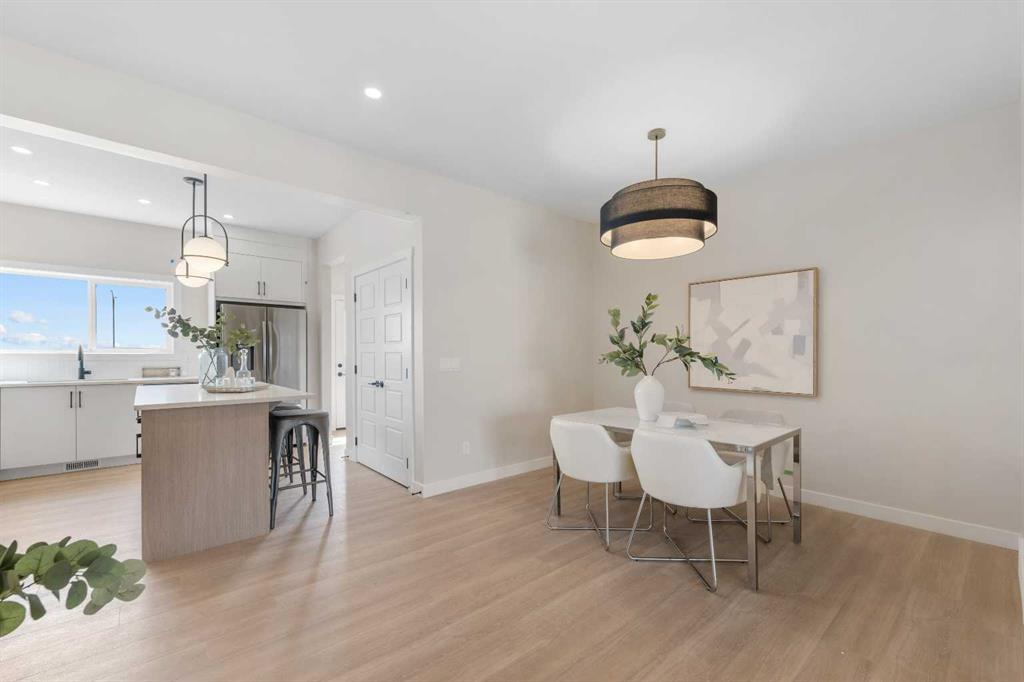 ** Brand New Home built by Genesis Homes Ready for Summer 2026 ** The Amber | Stunning Open Floor Plan | Open to Below Ceilings | Top of the Line Finishes | Sparkling Kitchen | Quartz Countertops | Stainless Steel Appliances | Kitchen Island | Barstool Seating | Pantry | 50" Electric Fireplace | Wide Plank LVP Flooring | Recessed Lighting | Expansive Living Space | Main Level Flex Room | Upper Level Bonus Room | Upper Level Laundry | 3 Sizeable Bedrooms | 2.5 Bathrooms | Plus Carpet Flooring in the Bedrooms | Unfinished Basement | 9Ft Basement Ceilings | Great Backyard | Alley Access | Steps Away from the Future Park. Welcome to your brand new 2-storey family home boasting 1,595 SqFt throughout the main and upper levels. Step inside to a foyer with open to below ceiling and views into the open floor plan main level. This home was designed with style and comfort at the forefront; wide plank LVP flooring, large windows, recessed lighting, high ceilings and more! The front flex room is ready for anyone with a work-from-home lifestyle or can easily be used as a day seating entertainment room. The great room is both spacious and comfortable plus has a stylish flare of a 50" electric fireplace. Next are the kitchen and dining room. The kitchen is outfitted with a sparkling quartz countertop, stainless steel appliances, ample cabinet space and a centre island with barstool seating. The dedicated dining room is ready for you to enjoy all your family meals. At the rear of the home is a mud room with closet storage and a door to your back yard. The main level is complete with a 2pc bath. Upstairs you'll find 3 sizeable bedrooms all with plush carpet flooring. The primary bedroom has its very own 3pc ensuite bath and a walk-in closet. Bedrooms 2 & 3 share the 4pc bath with a tub/shower combo. The upper level hall laundry is every home owner's dream as its located steps away from all bedrooms! Downstairs, the unfinished basement is a blank canvas ready for your own personal design! The basement of this home includes rough-ins ready for a legal secondary suite subject to approval and permitting by the city/municipality with a separate entrance, & 9Ft ceilings. Outside is a great backyard to enjoy in the warm summer months. This home has rear lane access if you choose to build a detached double garage. Genesis Builders Group follows the First-Time Home Buyer GST/HST Rebate to eliminate the 5% GST on qualifying new homes (up to $1 million) for qualifying first time home buyers. Hurry and book a showing at this gorgeous brand new Genesis home today!