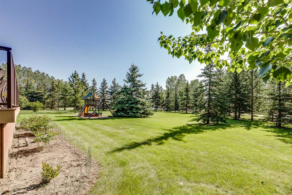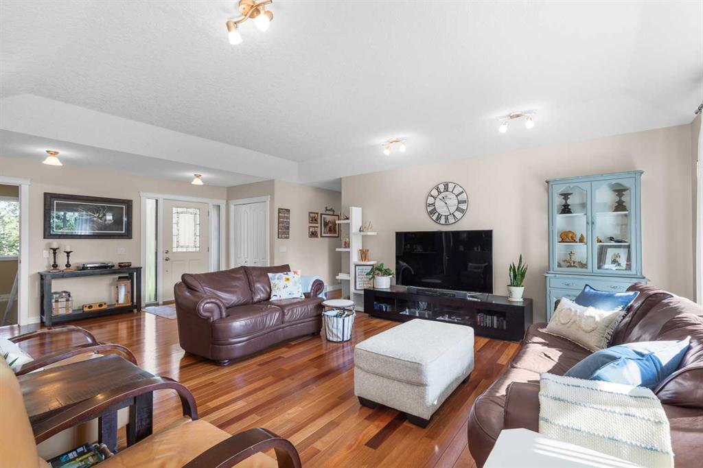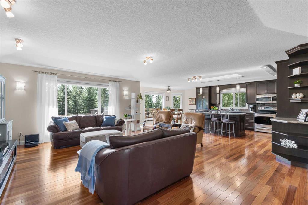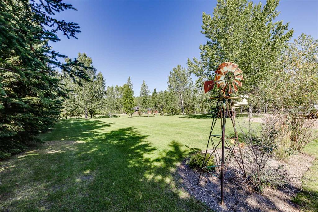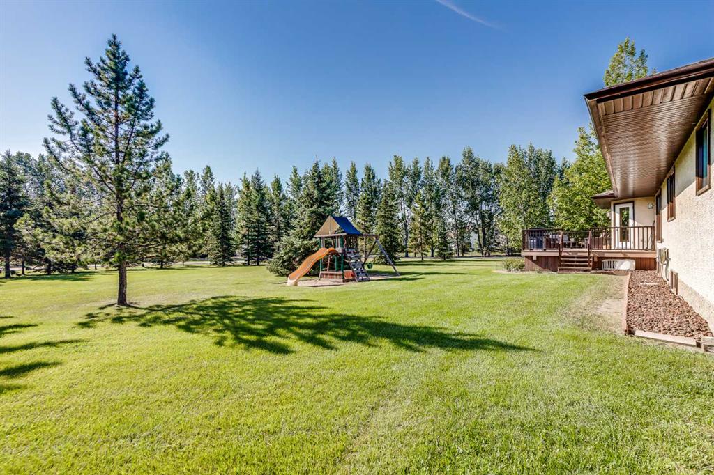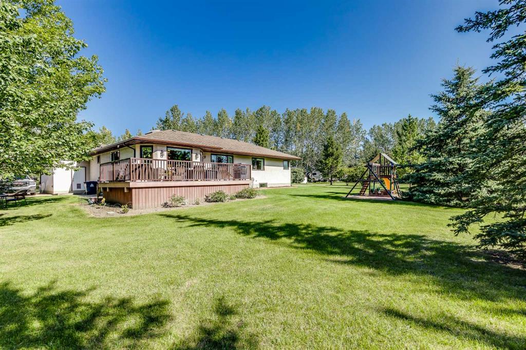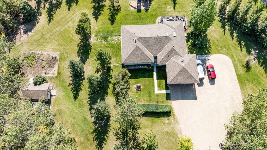JUST LISTED! Set among rolling hills just southeast of Airdrie, this exceptional 5 bed, 4 bath contemporary bungalow rests on a meticulously landscaped acreage designed for privacy and tranquility. Over 400 mature trees, thoughtfully planted more than two decades ago, now surround the home in a natural, park-like sanctuary. Renovated with intention and quality, the residence blends modern design with timeless appeal. Notable updates include: triple-pane windows, Brazilian teak hardwood flooring a chef-inspired kitchen with custom cabinetry, quartz countertops and premium stainless steel appliances. The main-floor primary suite offers a spa-like escape with double sinks, a freestanding soaker tub and a separate glass shower. The fully developed basement boasts a spacious recreational space, 2 large bedrooms, full bath and loads of storage. Completing the property are an attached, heated double garage, a high-producing, water well and a recently updated septic tank and field and no Poly-B, ensuring independence, efficiency, and peace of mind. All systems have been regularly maintained and well cared for. Acreage properties of this caliber are rarely available.
