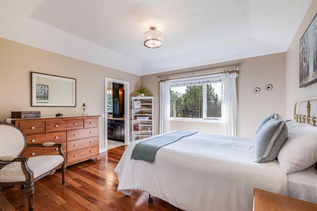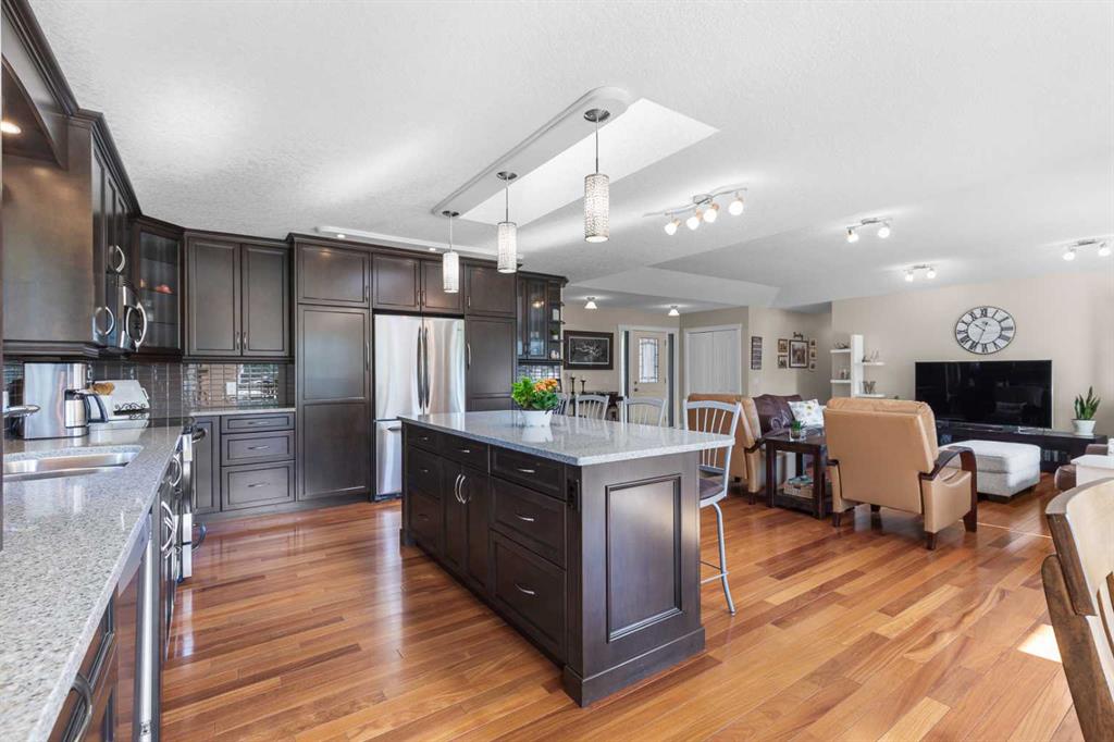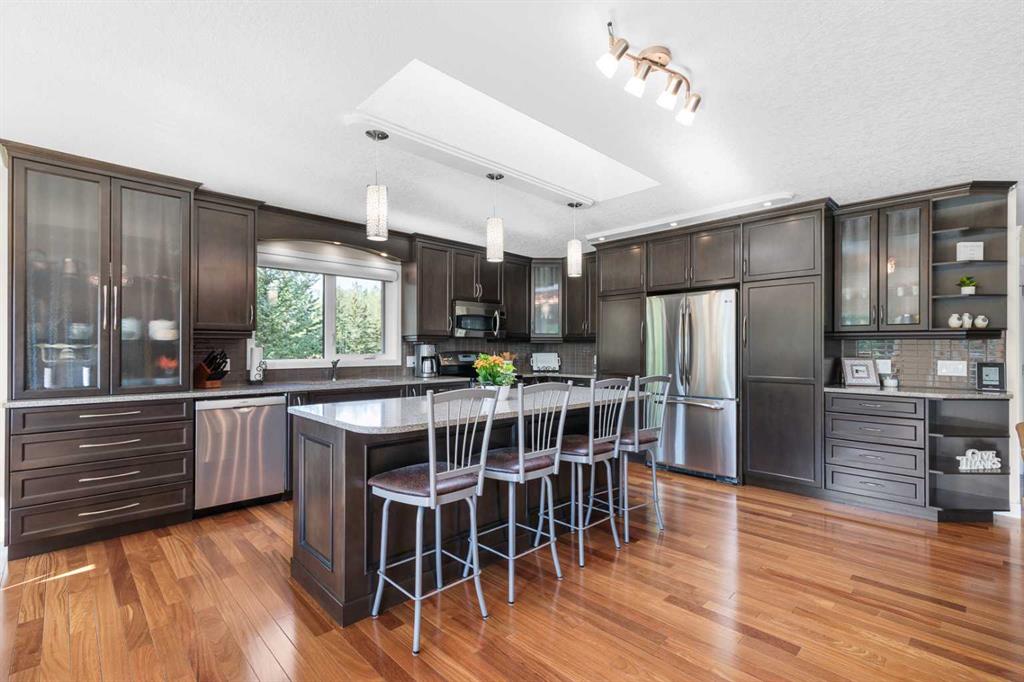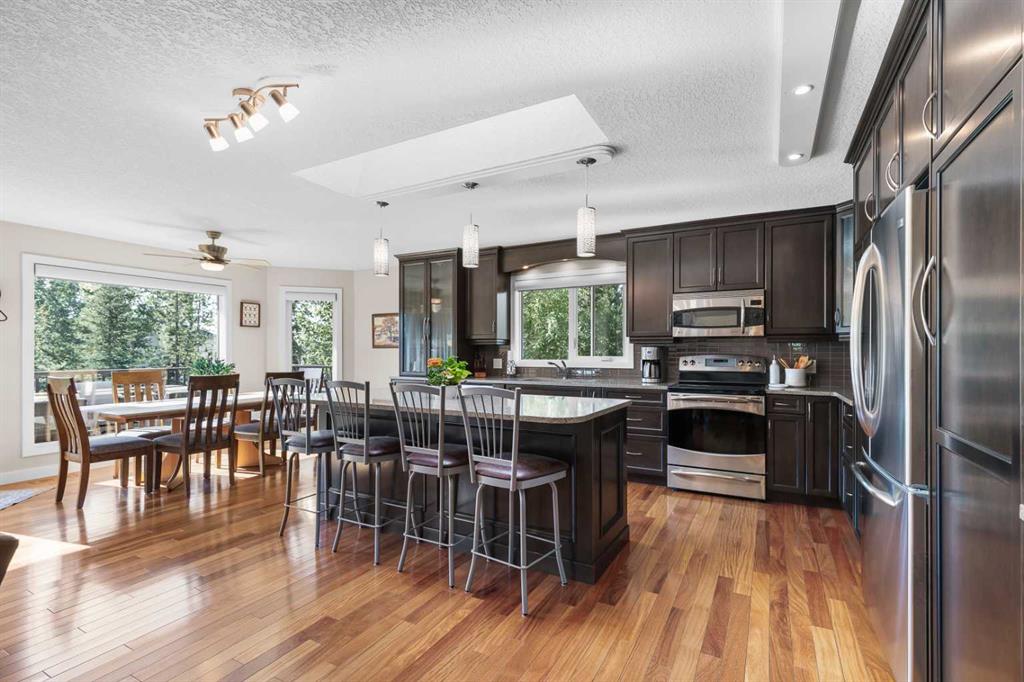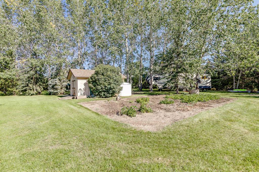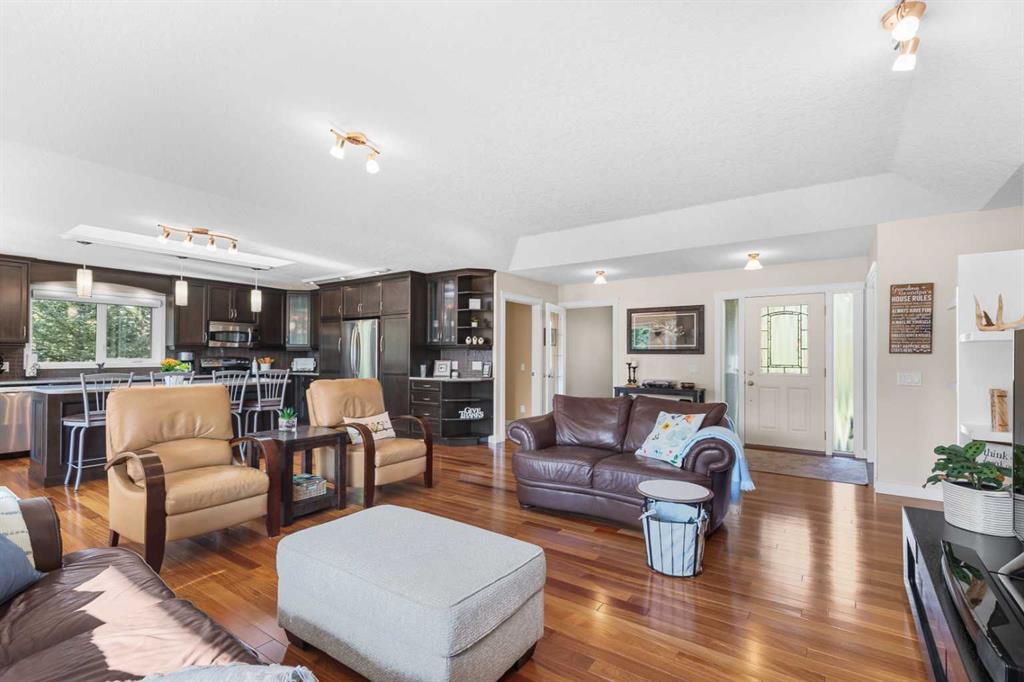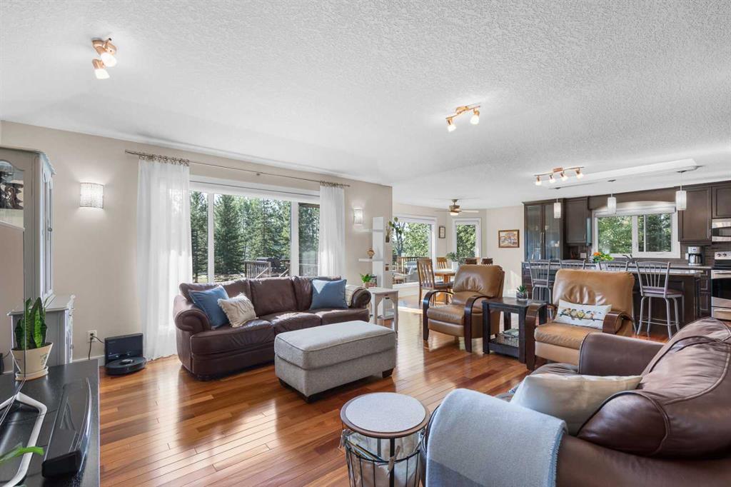 JUST LISTED! Set among rolling hills just southeast of Airdrie, this exceptional 5 bed, 4 bath contemporary bungalow rests on a meticulously landscaped acreage designed for privacy and tranquility. Over 400 mature trees, thoughtfully planted more than two decades ago, now surround the home in a natural, park-like sanctuary. Renovated with intention and quality, the residence blends modern design with timeless appeal. Notable updates include: triple-pane windows, Brazilian teak hardwood flooring a chef-inspired kitchen with custom cabinetry, quartz countertops and premium stainless steel appliances. The main-floor primary suite offers a spa-like escape with double sinks, a freestanding soaker tub and a separate glass shower. The fully developed basement boasts a spacious recreational space, 2 large bedrooms, full bath and loads of storage. Completing the property are an attached, heated double garage, a high-producing, water well and a recently updated septic tank and field and no Poly-B, ensuring independence, efficiency, and peace of mind. All systems have been regularly maintained and well cared for. Acreage properties of this caliber are rarely available.