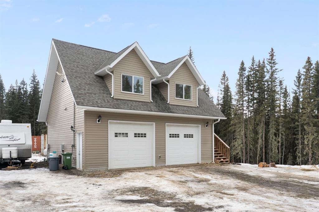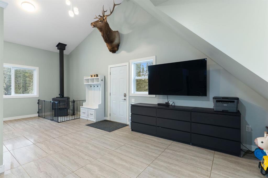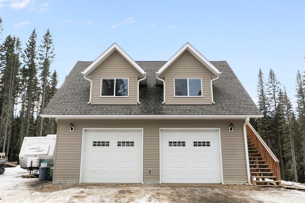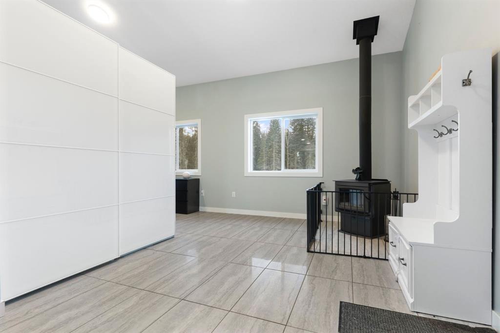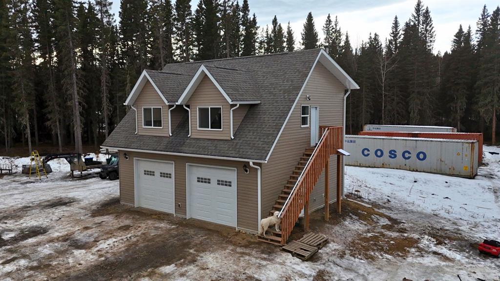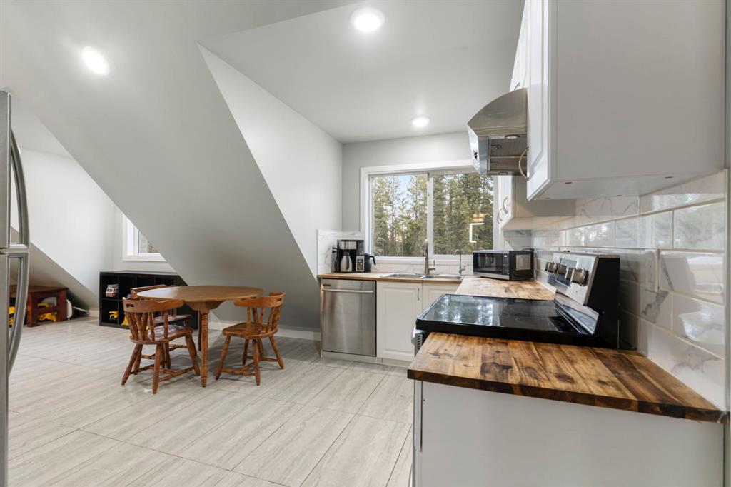 Escape to your own private retreat on this exceptional acreage with easy access to Crown land, offering unmatched privacy, endless recreation, and true Alberta wilderness right out your back gate. Surrounded by mature trees with open pasture areas and a horse run-in shed already in place, this property is nicely set up for equestrian use, outdoor enthusiasts, or those simply seeking space, serenity, and direct access to nature. The main residence offers over 800 sq ft above grade with a bright, lofty layout designed for future expansion and comfortable country living. Large windows frame peaceful treed views, while the open living and dining areas and the freestanding wood-burning stove create a warm and inviting atmosphere. The kitchen features crisp white cabinetry, warm butcher block countertops, stainless steel appliances, and a modern tile backsplash with natural light that pours in through large windows overlooking the drive and surrounding trees. On the lower level, the impressive, oversized garage space provides substantial room for vehicles, equipment, toys, or workshop use, ideal for hobbyists, trades, or recreational storage. With established infrastructure, usable land, and direct Crown land access for riding, quadding, hiking, and exploring, this is a rare opportunity to secure a truly versatile acreage property.