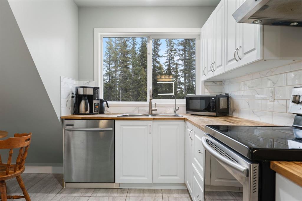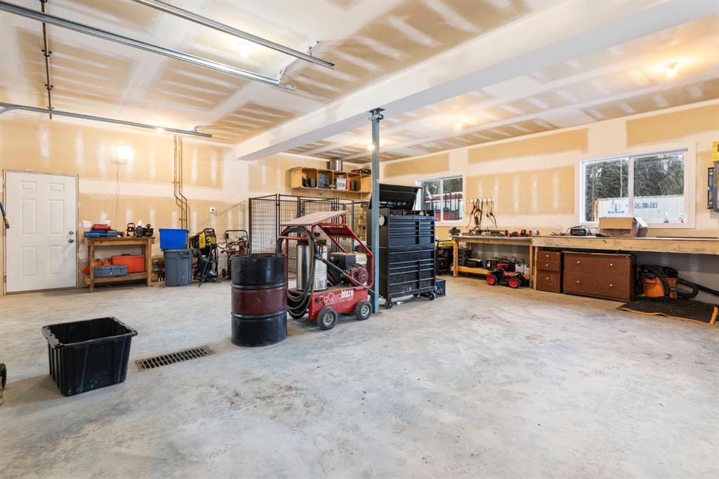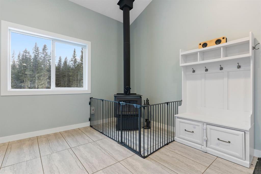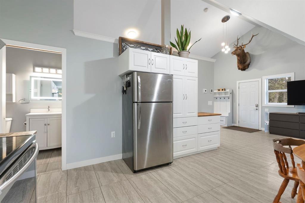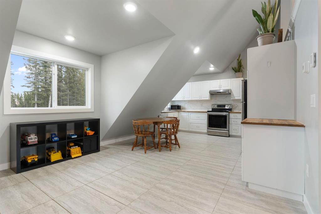 Escape to your own private retreat on this exceptional acreage with easy access to Crown land, offering unmatched privacy, endless recreation, and true Alberta wilderness right out your back gate. Surrounded by mature trees with open pasture areas and a horse run-in shed already in place, this property is nicely set up for equestrian use, outdoor enthusiasts, or those simply seeking space, serenity, and direct access to nature. The main residence offers over 800 sq ft above grade with a bright, lofty layout designed for future expansion and comfortable country living. Large windows frame peaceful treed views, while the open living and dining areas and the freestanding wood-burning stove create a warm and inviting atmosphere. The kitchen features crisp white cabinetry, warm butcher block countertops, stainless steel appliances, and a modern tile backsplash with natural light that pours in through large windows overlooking the drive and surrounding trees. On the lower level, the impressive, oversized garage space provides substantial room for vehicles, equipment, toys, or workshop use, ideal for hobbyists, trades, or recreational storage. With established infrastructure, usable land, and direct Crown land access for riding, quadding, hiking, and exploring, this is a rare opportunity to secure a truly versatile acreage property.