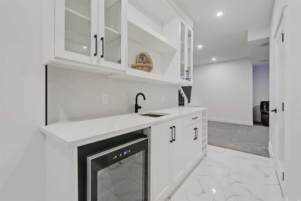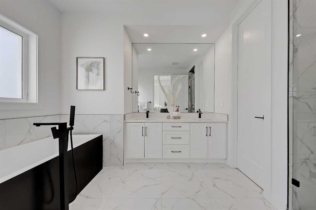 Tucked onto a quiet, tree-lined street in Mount Pleasant, this semi-detached infill is one of those homes that immediately feels right. Bright, beautifully finished, and designed with intention, it strikes the perfect balance between elevated style and everyday comfort. The main floor sets the tone with tall ceilings, wide-plank hardwood, and a layout that flows effortlessly from front to back. The kitchen is a standout, anchored by full-height cabinetry, quartz countertops, and a large waterfall island that naturally becomes the gathering spot. Whether it’s morning coffee, casual dinners, or hosting friends, this space delivers. The living area is warm and inviting, centred around a gas fireplace with custom built-ins and overlooking the sunny, SOUTH-FACING BACKYARD, while the dining area comfortably hosts everything from weeknight meals to long weekend dinners. A dedicated front office offers a quiet place to work or study, while the rear mudroom with built-ins and a thoughtfully designed powder room round out the main level with function you’ll appreciate every day. Upstairs, the primary bedroom feels like a true retreat. Calm, spacious, with a tall tray ceiling – the space is thoughtfully finished with a walk-in closet and a spa-inspired ensuite featuring heated floors, dual vanities, a deep soaker tub, and a glass-enclosed shower. Two additional bedrooms share a beautifully finished full bathroom, and upper-level laundry keeps life simple and organized. The fully developed basement adds even more flexibility. A spacious family room with wet bar is perfect for movie nights or entertaining, while the flex space adapts easily as a home gym, play area, or hobby room. A fourth bedroom with walk-in closet and a full bathroom make this level ideal for guests or teens who want their own space. Outside, the fenced backyard is private and sun-filled, offering room to relax, garden, or let kids and pets play. A detached double garage provides secure parking and extra storage, and central air conditioning keeps the home comfortable year-round. The location seals the deal. A quick 5-min walk to Confederation Park, you have easy access to walking and bike paths, playgrounds, outdoor rinks, and green space that locals love in every season. Stroll to neighbourhood favourites along 4th Street NW like Velvet Café, 4th Spot, and Milk Ice Cream, or enjoy quick access to downtown, SAIT, and the University of Calgary, plus more restaurants and shopping along 16 Ave, including Northland Mall, Earls, Starbucks, and more. Nearby schools include King George School at the end of the street (just 2-min away!) and St. Joseph Elementary only 3-blocks away. This is inner-city living done right. Warm, welcoming, and ready to impress in one of Calgary’s most loved neighbourhoods.