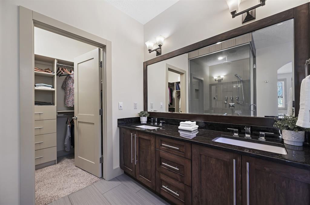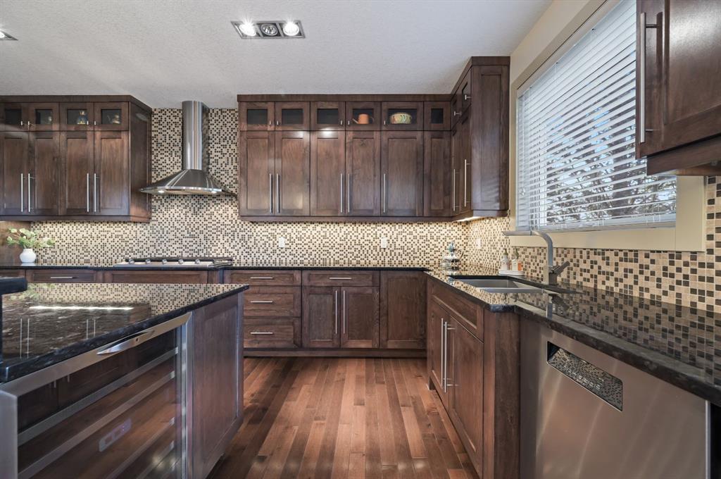 This striking family home is the perfect balance between style and function. On a quiet street in Wexford Estates, over 4300 sqft of thoughtful and practical design welcomes and impresses. The kitchen has all you could want—professional grade appliances, including a new Dacor gas cooktop, phenomenal counter and storage space, and finishes that will embrace your family and ‘wow’ when you entertain. Natural light flows through every room thanks to the well-placed windows. With 3 bedrooms up—including an amazing master and en-suite—and an additional bedroom down, this home accommodates family and guests in true comfort. Beautiful lower-level has heated floors, full bar area and spacious rec room! Enjoy the quiet privacy of the extensively landscaped yard featuring an incredible ‘outdoor living space’ with pergola, hot tub and overhead radiant heater. Huge heated triple-garage, A/C, upgraded mechanicals, speakers throughout...truly too many features to list. Walking distance to elementary and junior high school and all amenities. Every element in every space is truly ‘just right’ and must be viewed to be appreciated.