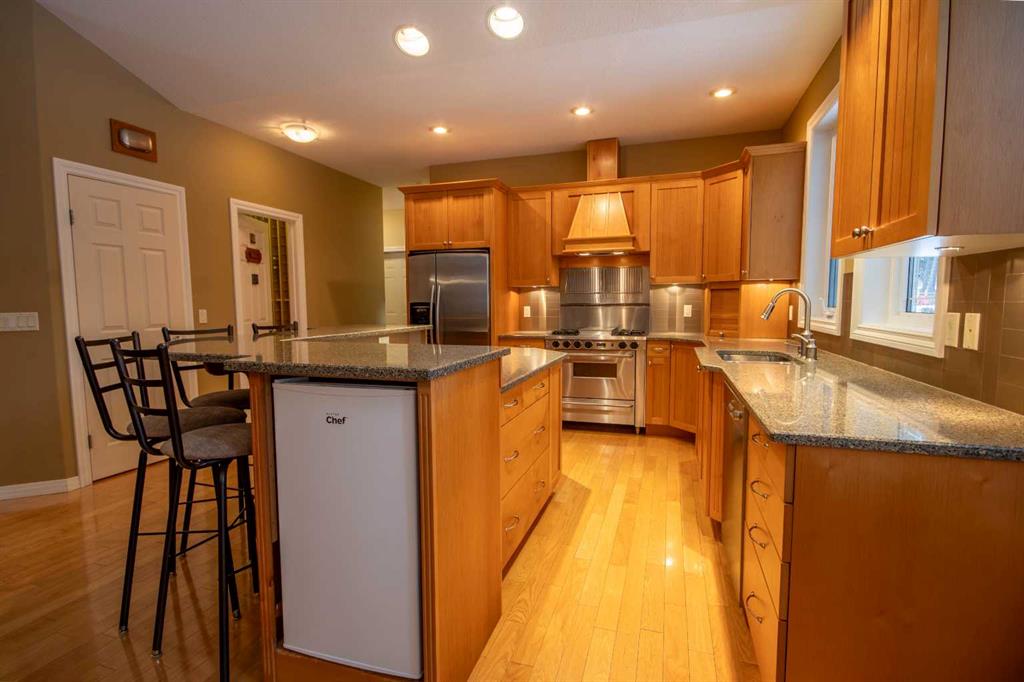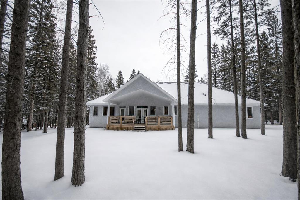 Tucked onto 1.63 acres, just minutes from SUNDRE, this spacious bungalow offers 1,813 ft² of living space. Inside the home is hardwood flooring throughout, two primary suites, each with its own ensuite, a built-in office, walk-in pantry and a walk-in temperature-controlled wine room. A dedicated laundry room and additional storage makes this home easy to live in, with the space you need for everyday life. Spend your summer days enjoying your oversized deck, overlooking your private forest. There is an attached double heated garage, plus a detached single garage—ideal for a workshop or shop space. Sundre is only one hour from NW Calgary or Red Deer and offers a small town vibe that can't be beat.