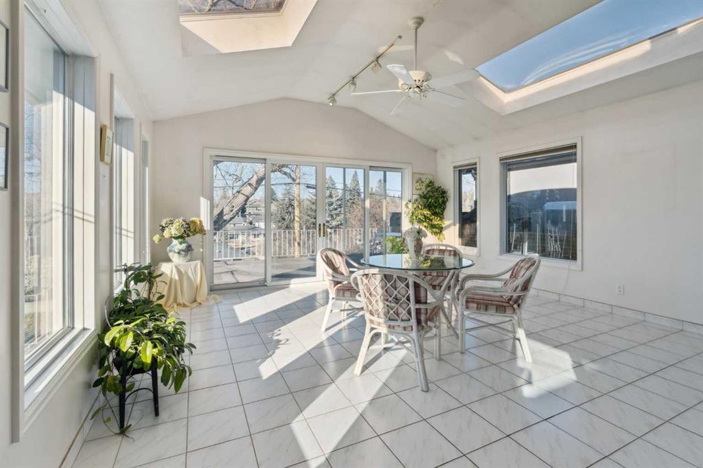 A rare, custom-built hillside bungalow from the 1960s, this home is packed with architectural personality and ready for its next great chapter. Designed with intention and craftsmanship that’s hard to replicate today, the completely unique floor plan offers an exceptional canvas for a thoughtful renovation or inspired redesign. The main level features two bedrooms plus a den with original built-ins, offering flexibility for modern living. The primary bedroom is generously scaled, while the main bathroom is a period-perfect nod to the 1960’s—complete with a deep soaker tub, expansive skylight, and a Hollywood-style dressing area that simply doesn’t exist in today’s builds. Soaring vaulted ceilings anchor the living and dining areas, framing views of the west-facing backyard and flooding the space with natural light. The kitchen has seen updates over the years, but the showstopper is the substantial rear addition: a light-filled sunroom with walls of windows and a top-tier gas fireplace, creating a cozy retreat year-round. In addition to the thoughtful design, the home features practical built-ins throughout: a built-in office area for working from home, a generous built-in bookcase in the living room, and a matching built-in in the basement rec room—each contributing to the home’s distinctive character and storage-friendly appeal. Downstairs, you’ll find beautifully detailed woodwork, a large family room, an additional spacious bedroom, and a three-piece bath—ideal for guests or future reimagining. The attached double garage completes the package, while numerous built-ins and charming “easter eggs” throughout the home are a reflection of upgrades and craftsmanship from another era. With a footprint like this, the possibilities are exceptional. Whether restoring the home’s mid-century roots or reinterpreting it with a modern design lens, this is a rare opportunity on Rosery Drive, one of Calgary’s most coveted streets. Steps from Confederation Park and quietly tucked away, you’ll enjoy inner-city living without hustle and bustle. This is a home that must be experienced in person to fully appreciate its potential. Book your private showing today and imagine what this iconic 1960s home could become.