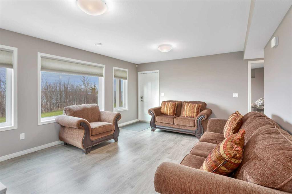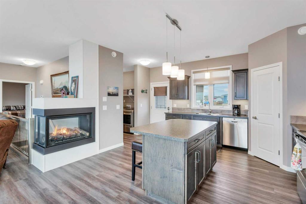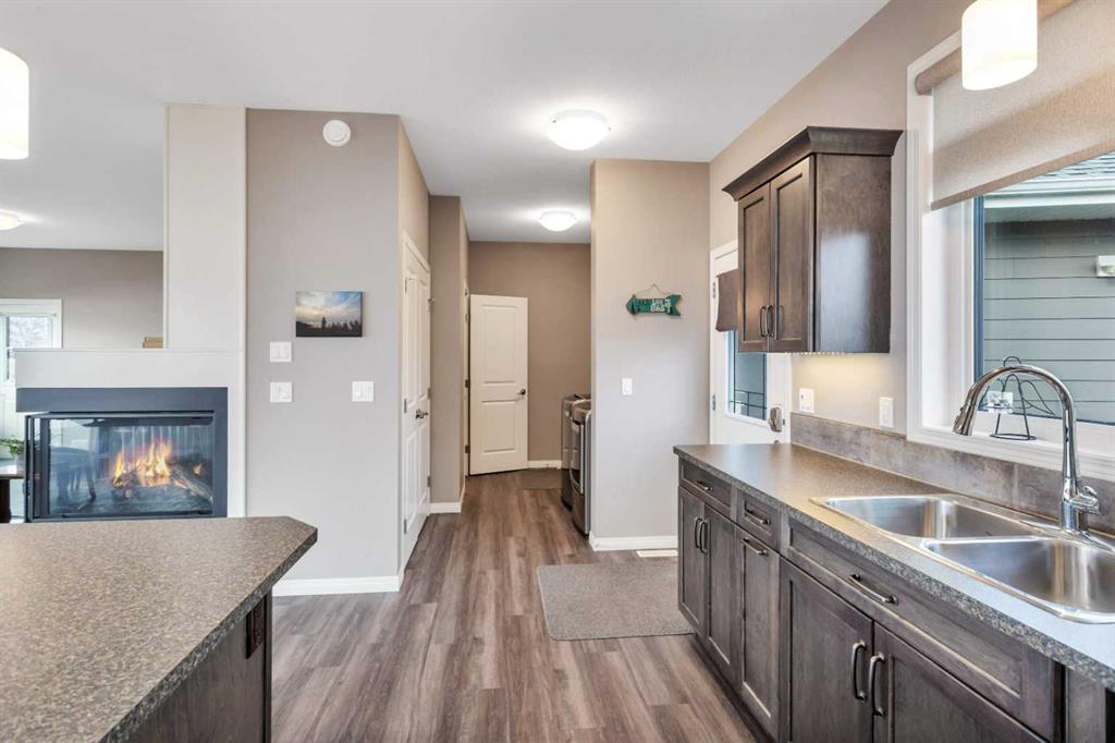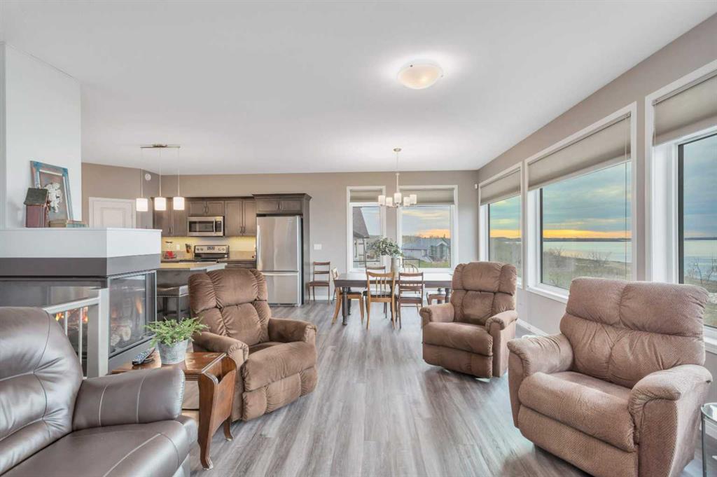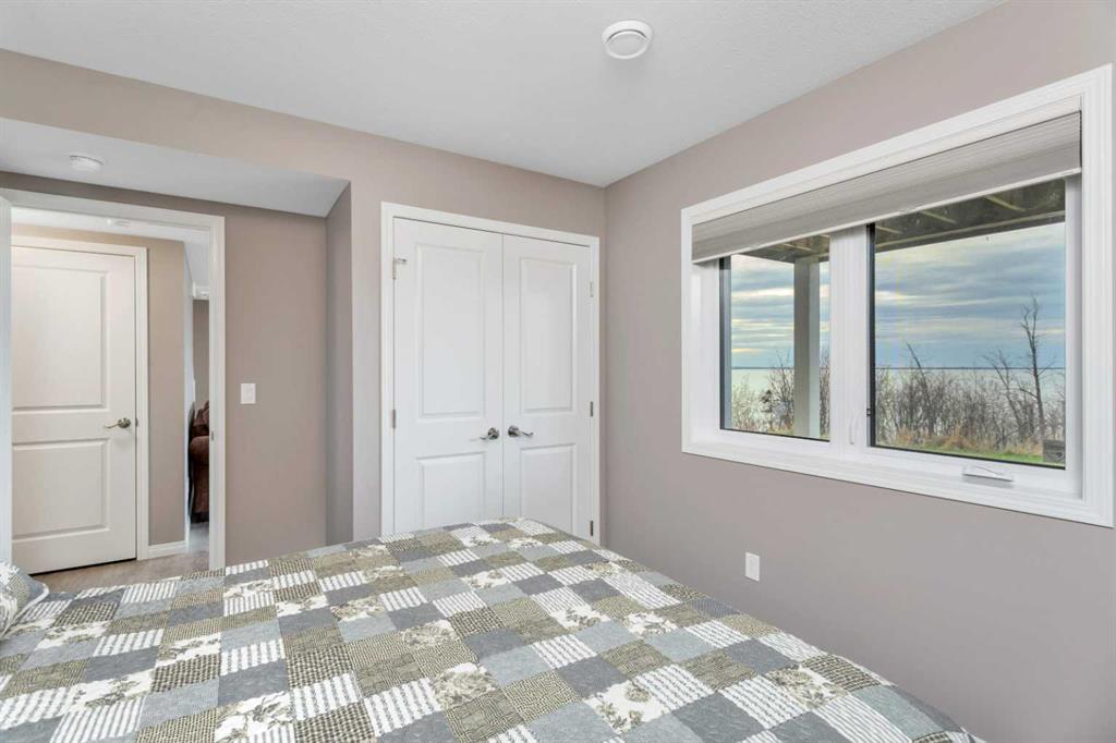 If lake views are on your wish list, this property is your perfect match! This stunning walkout bungalow is designed to impress, featuring a wall of windows that frame unobstructed, sweeping views of Buffalo Lake and captivating sunsets from its prime west-facing position. Nestled in a quiet neighborhood with paved roads leading right to your doorstep, this home offers the added convenience of municipal water and services. Built with quality and longevity in mind, the home is equipped with triple-pane windows, Hardie board siding, and cozy in-floor heating for year-round comfort. Inside, this meticulously maintained 5-bedroom, 3-bathroom residence feels almost brand new. The kitchen, with its central island, flows seamlessly into the open-concept living space, while the main floor also boasts convenient laundry facilities. The spacious primary suite serves as your private sanctuary, featuring a private ensuite bath — a serene retreat where you can unwind in comfort. A stunning three-sided fireplace anchors the living area, providing the perfect ambiance as you take in the breathtaking views. The fully developed walkout basement offers additional space for leisure and relaxation, with four generously sized rooms that can easily serve as bedrooms, offices, or creative spaces, along with a large, open family room. From here, step out to ground-level access to the lakeside yard, where mature trees provide shelter from the north winds, creating a secluded oasis perfect for both entertaining and relaxation. Experience the best of every season at Buffalo Lake — whether it's indulging in summer boating and swimming or embracing the winter's beauty with ice fishing and sledding. The vibrant community hosts a variety of events year-round, offering an exceptional mix of social engagement and serene living. With air-conditioning for your comfort and an extended driveway that provides ample parking for guests or recreational vehicles, this home is as functional as it is luxurious. Whether you’re seeking a refined year-round residence or a lavish weekend retreat, Buffalo Lake offers an unmatched lifestyle. This is an extraordinary opportunity to own a true gem — don’t let it slip away!