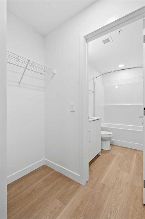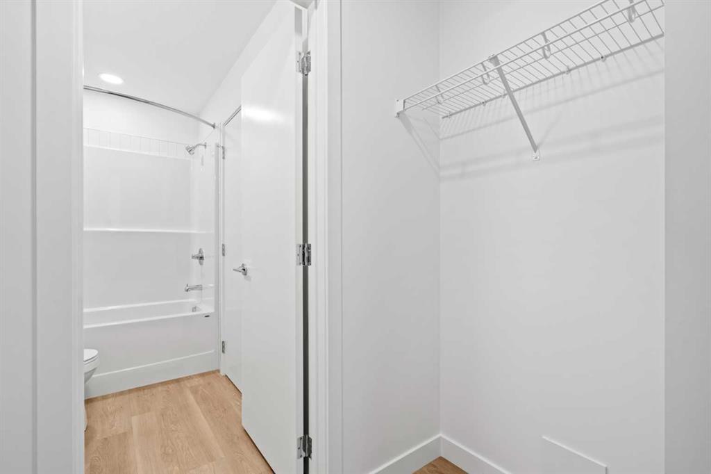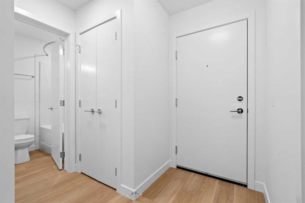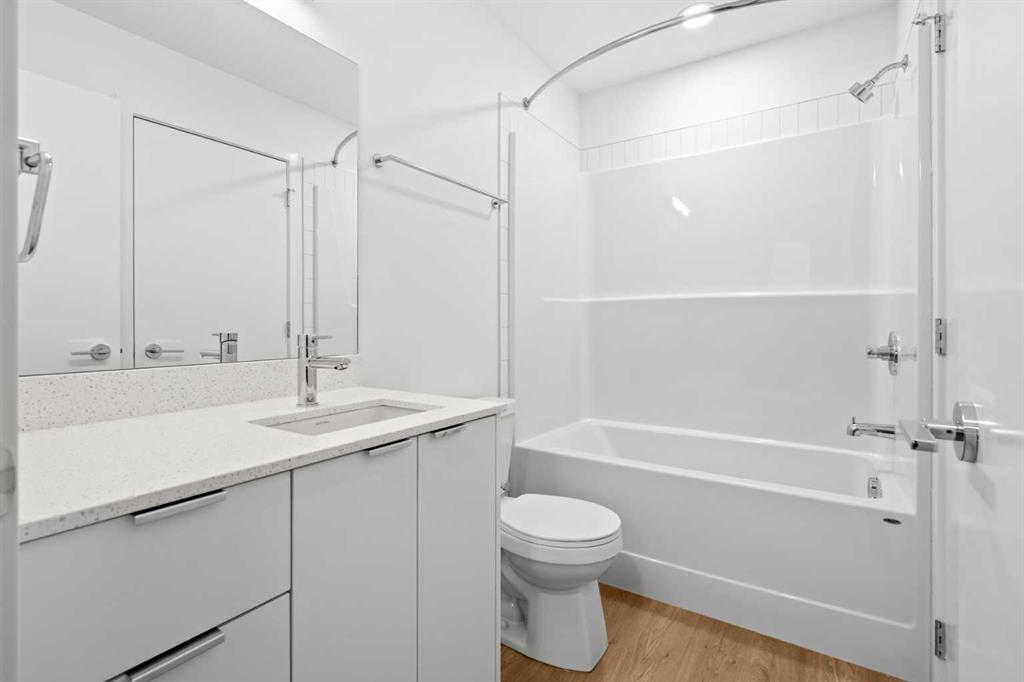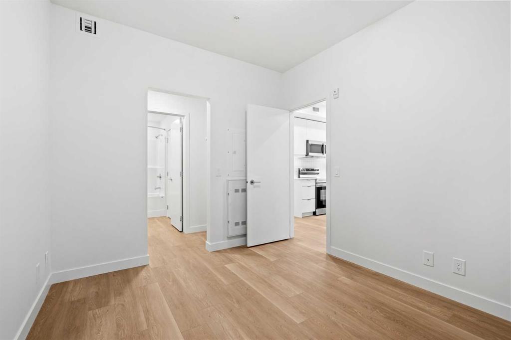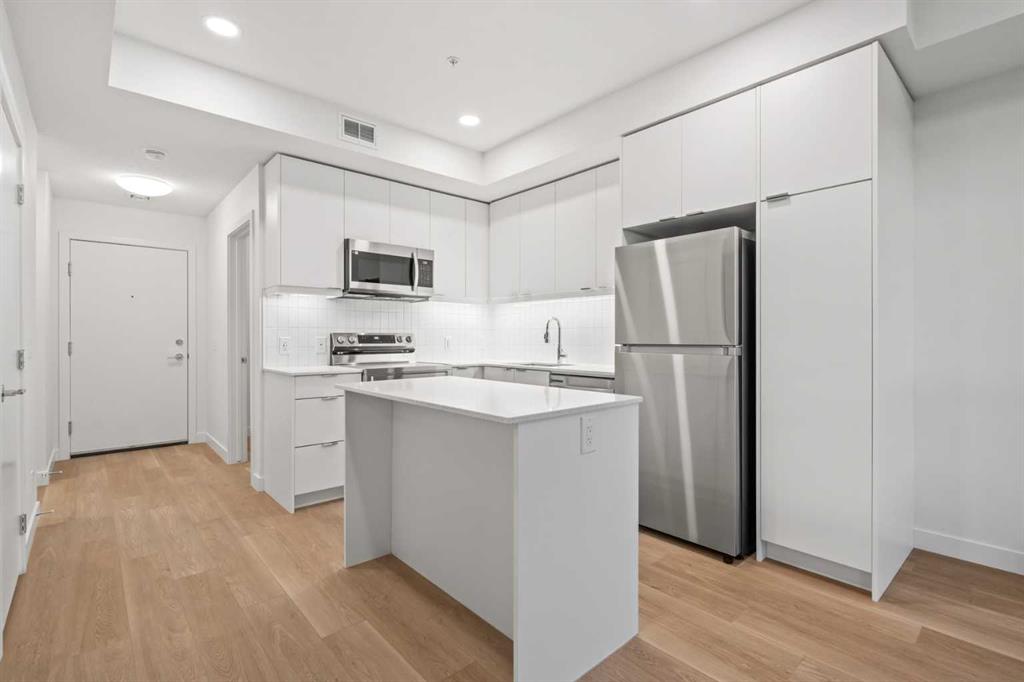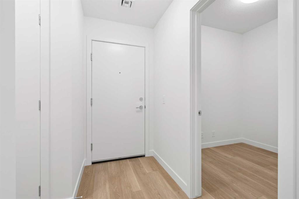 BRAND NEW | 1 BED + DEN / 1 BATH / 552 SQ FT | MODERN FINISHES | LOW CONDO FEES | TITLED PARKING – Welcome to East Hills by Minto Communities, an award-winning Canadian builder with over 70 years of experience. This condo complex is located in the growing community of Belvedere, just steps from East Hills Shopping Centre. Designed to foster a true sense of community, East Hills features pedestrian pathways, nearby greenspace, and a walkable, neighbour-friendly layout. Enjoy unbeatable convenience with Costco, Walmart, banks, restaurants, and everyday essentials right across the street, along with quick access to major roadways and public transit for an easy commute downtown or around the city. This brand-new 1 bedroom plus den, 1 bathroom condo offers a smart and functional layout with 614 sq ft of well-designed living space and modern finishes throughout. As you enter the home, you’ll find a versatile den located at the front left of the unit—ideal for a home office, workout space, or additional storage. The kitchen is centrally located within the home and features a large island, stainless steel appliances, ample cabinetry, and contemporary finishes, making it both stylish and practical. The open-concept design flows seamlessly into the living area at the back of the home, where large windows and direct access to the private balcony create a bright and inviting space—perfect for relaxing, entertaining, or enjoying summer evenings. The bedroom is conveniently located just off the kitchen and offers a comfortable retreat, complete with a walk-in closet. The walk-through closet leads into the bathroom, which also provides access from the foyer for added convenience. In-suite washer and dryer are located here as well, maximizing efficiency without sacrificing space. Additional highlights include titled parking, a pet-friendly building (with restrictions), and access to an on-site fitness centre, enhancing the lifestyle appeal of this low-maintenance home. With modern design, low condo fees, and an exceptional location, this is an excellent opportunity for first-time buyers, investors, or those looking to downsize in one of southeast Calgary’s most convenient communities. Contact Minto’s sales staff and book your visit today!