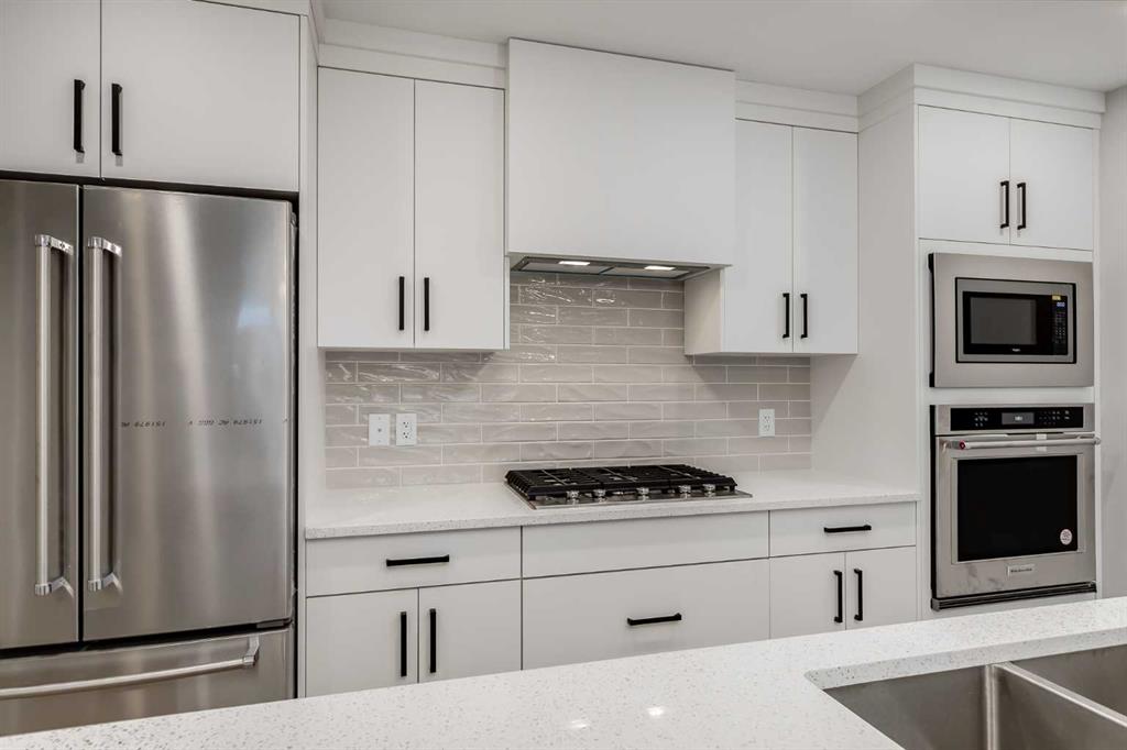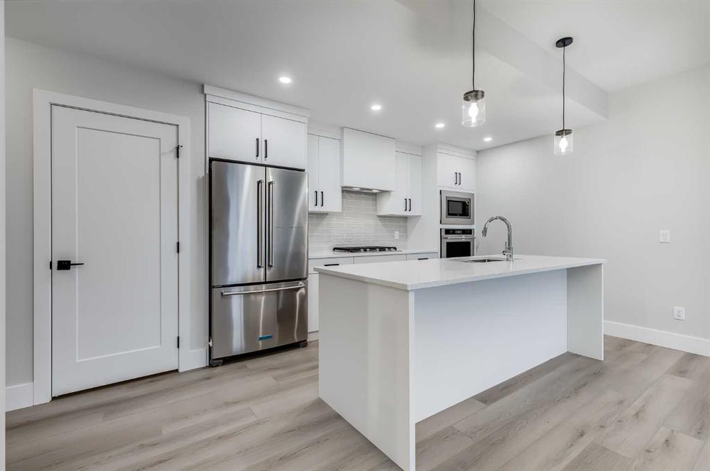 NEW TOWNHOME W/ ROOFTOP PATIO, GOLF COURSE VIEWS, & DOUBLE CAR GARAGE! Built in 2023, this modern townhome features a smart multi-level layout with a double attached garage in the front, along with a highly desirable dual primary bedroom layout with a loft-style flex space inside. The home also offers a rooftop patio and main floor balcony both facing the Shaganappi Point Golf Course. The entry level features a double attached garage with driveway parking, & lots of extra storage space. Head upstairs to the main living level which showcases a bright, open-concept design with durable vinyl plank flooring throughout and a welcoming living room anchored by a gas fireplace. The kitchen has Quartz countertops, built-in stainless steel appliances, a gas cooktop, a large island with seating, & even a walk-in pantry. A 2pc powder room finishes off the 2nd floor. Heading upstairs to the 3rd floor, you'll find the 1st balcony off of the landing, perfect for a relaxing morning coffee! This floor is also home to the dual master layout, with two spacious bedrooms positioned for privacy. Each bedroom features large windows, a walk-in closet, and its own luxurious 5pc ensuite, making this layout perfect for roommates, guests, or shared living. A conveniently-placed laundry room completes the 3rd floor. Up the stairs again will bring you to the versatile loft space complete with its own 3pc bath. The loft can function as a 3rd bedroom, ideal WFH office space, media room, gym, or flexible space to suit your needs. A second balcony on this level extends the living space outdoors, finished with composite decking and glass railings, there is plenty of space for loungers and a fire table while offering elevated views over the surrounding community and Calgary's downtown skyline. Set just steps from Bow Trail, this home is just minutes from everything including the Bow River for relaxing nature walks & Westbrook Mall for shopping and amenities. Nearby is the Shaganappi Point LRT Station for quick downtown access, 17th Ave shops and dining, and you are surrounded by established inner-city neighbourhoods with endless parks, coffee shops, restaurants with just a few minutes commute to Downtown. Access to the rest of the city is easy through several major roadways including Bow Trail, Crowchild Trail & 17th Ave. Jumping in the car: Downtown is an 11 min drive (5.7KM), Airport is a 25 min drive (23KM), & Banff is a 1 hr 22 min drive (123KM).