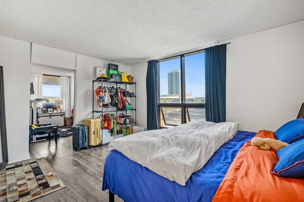 Spacious Corner Unit in the Heart of Downtown Calgary – 1 Bed + Den | Prime Location. Welcome to urban living at its finest! This exceptionally large 1 bedroom + den, 1 bathroom corner unit offers an unbeatable combination of space, natural light, and location – all in the vibrant core of Downtown Calgary. Boasting over 935 SQFT of thoughtfully designed living space, this open-concept layout is perfect for professionals, investors, or anyone seeking the convenience of downtown living without sacrificing comfort. The expansive floor-to-ceiling windows flood the home with natural light and offer stunning cityscape views, while the spacious den/office provides the ideal work-from-home setup or flex space for guests or hobbies. The contemporary open concept NEWLY PAINTED kitchen features stainless steel appliances, and sleek cabinetry, making it perfect for cooking and entertaining. The primary bedroom is bright and spacious with ample closet space, and the 4-piece bathroom includes modern finishes, and fresh paint. Building amenities include SUANA / PICKLEBALL COURT / FITNESS CENTER