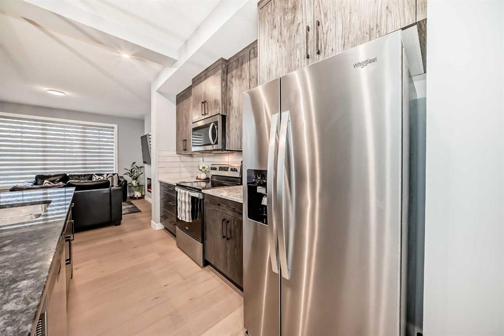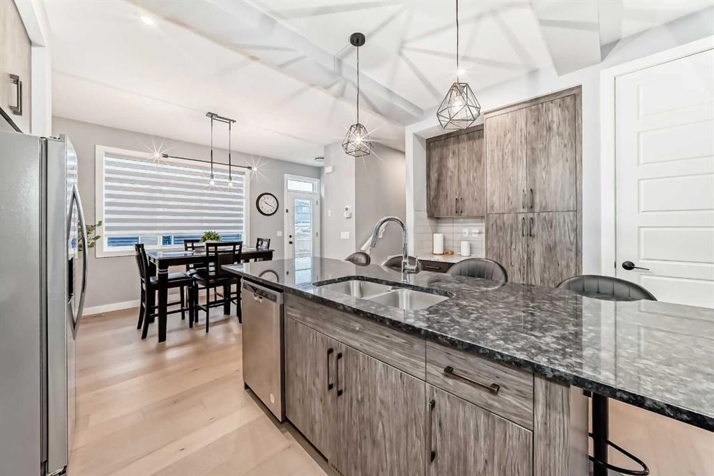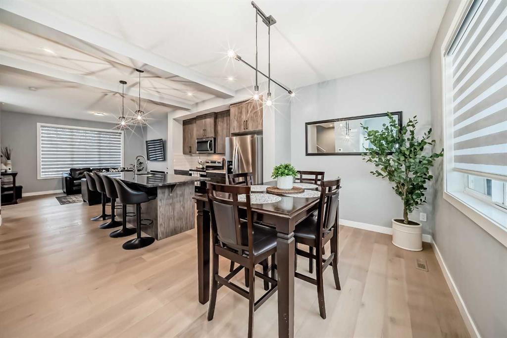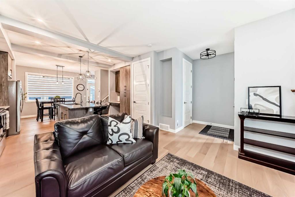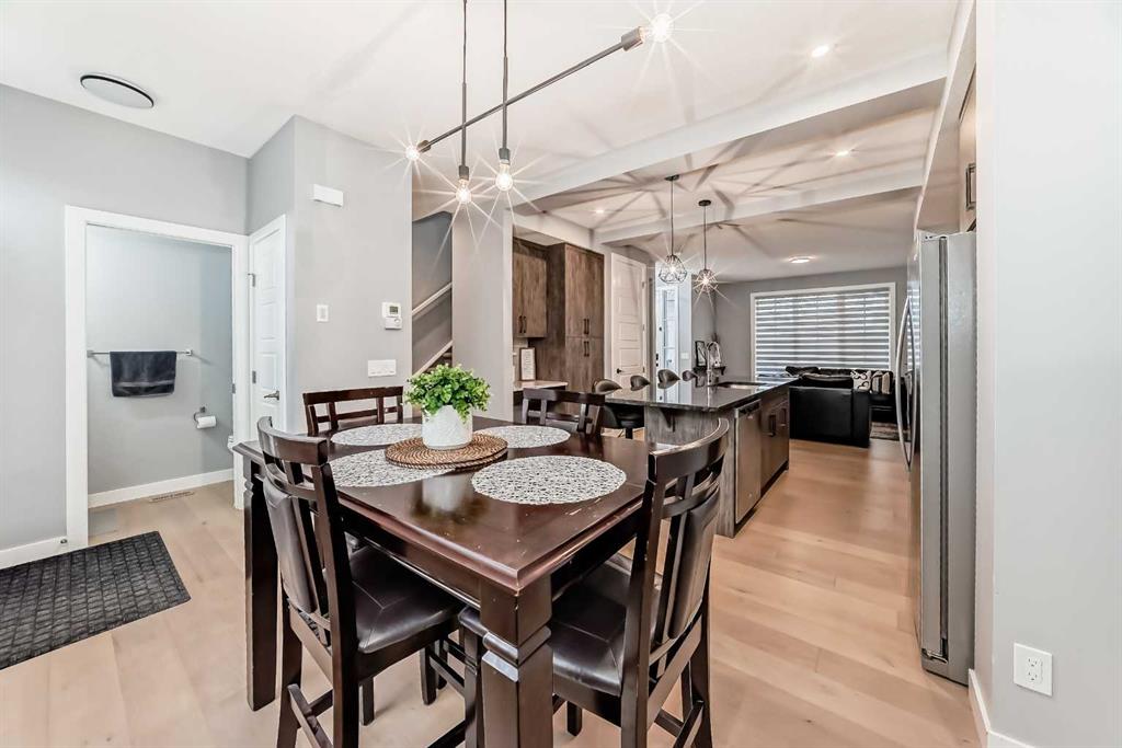 Welcome to your bright sanctuary in the heart of sought-after Lanark community in Airdrie! A beautifully finished half-duplex with side entrance that checks every box and then some. Sunlight pours through big windows from the moment the day begins, lighting up the vinyl flooring that flows effortlessly through the entire main level. The open concept main floor feels so spacious yet cozy, perfect for morning coffee with the sun streaming in and family dinners that spill from kitchen to living room that will surely be enjoyable. The kitchen really shines with sleek quartz counters tops, a thoughtful layout, plenty of storage, beautiful cabinetry and a design that makes cooking or just hanging out at the island so wonderful. Tucked just off the main floor is a convenient powder room, and upstairs you’ll discover three generous bedrooms, two full bathrooms, and a laundry area. No more lugging baskets up and down the stairs. The primary bedroom is bright and spacious with 3 piece-ensuite and walk-in closet. At the back, there's an oversized double-car garage where you can park big SUVs. This property is located just off 40 Avenue with fast access to Highway 2, so you get the peace and the community-feel of Lanark with an easy commute into Calgary and Cross Iron Mills whenever you need it. This isn’t just a house, it’s the home you’ve been waiting for, bright, modern, practical, and ready for your life and cherished memories!