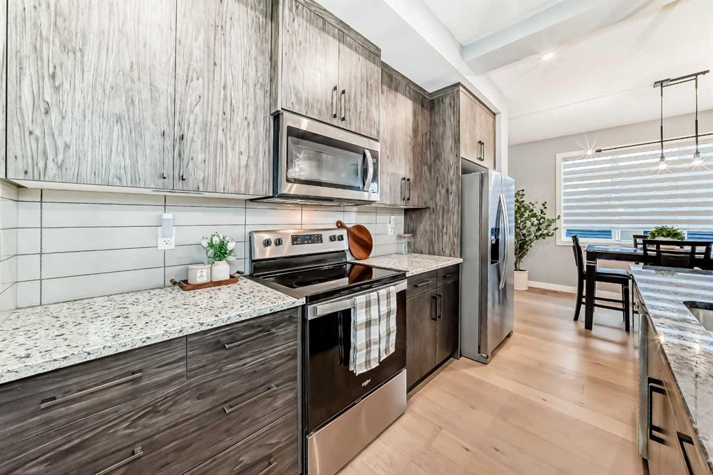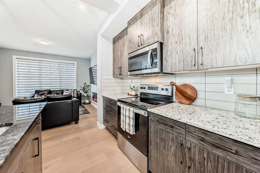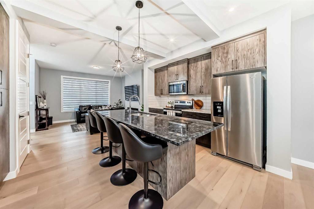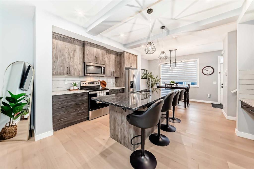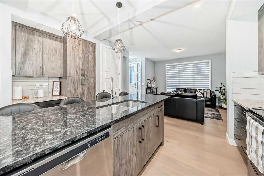 Welcome to your bright sanctuary in the heart of sought-after Lanark community in Airdrie! A beautifully finished half-duplex with side entrance that checks every box and then some. Sunlight pours through big windows from the moment the day begins, lighting up the vinyl flooring that flows effortlessly through the entire main level. The open concept main floor feels so spacious yet cozy, perfect for morning coffee with the sun streaming in and family dinners that spill from kitchen to living room that will surely be enjoyable. The kitchen really shines with sleek quartz counters tops, a thoughtful layout, plenty of storage, beautiful cabinetry and a design that makes cooking or just hanging out at the island so wonderful. Tucked just off the main floor is a convenient powder room, and upstairs you’ll discover three generous bedrooms, two full bathrooms, and a laundry area. No more lugging baskets up and down the stairs. The primary bedroom is bright and spacious with 3 piece-ensuite and walk-in closet. At the back, there's an oversized double-car garage where you can park big SUVs. This property is located just off 40 Avenue with fast access to Highway 2, so you get the peace and the community-feel of Lanark with an easy commute into Calgary and Cross Iron Mills whenever you need it. This isn’t just a house, it’s the home you’ve been waiting for, bright, modern, practical, and ready for your life and cherished memories!