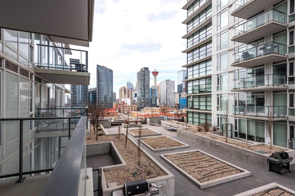 Situated in the heart of Downtown Calgary, this fantastic move-in-ready 1-bedroom, 1-bathroom condo offers exceptional value! Located in the sought-after South Tower of The Guardian, you’re just steps from the Stampede Grounds, BMO Centre, Sunterra Market, Central Library, cafés, restaurants, nightlife, and the LRT, with river pathways and endless amenities at your doorstep. Floor-to-ceiling windows in both the living room and bedroom fill the home with natural light and showcase an open, airy layout. The contemporary European-inspired kitchen features sleek cabinetry, quartz countertops, glass backsplash, under-cabinet lighting, and a fully integrated stainless steel appliance package. Step onto your private balcony and take in impressive views of the Calgary Tower, downtown skyline, and cityscape. Additional highlights include in-suite laundry, central A/C, titled underground parking, and a separate assigned storage locker. Residents of The Guardian enjoy premium amenities: 24-hour concierge, a fully equipped fitness centre, resident lounge, garden terrace, bike storage, workshop, and pay-and-park visitor parking. Immediate possession!