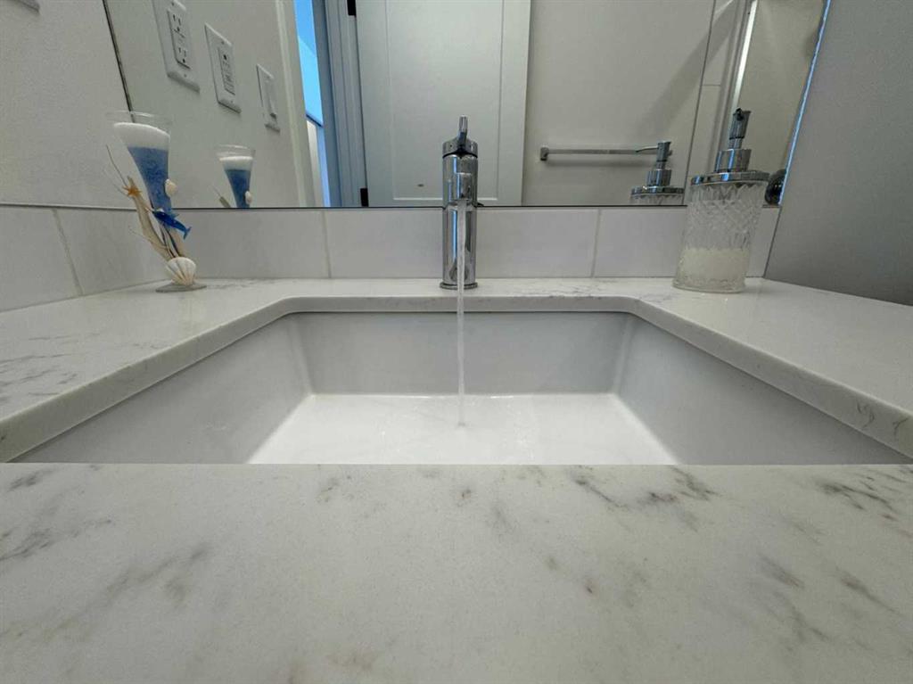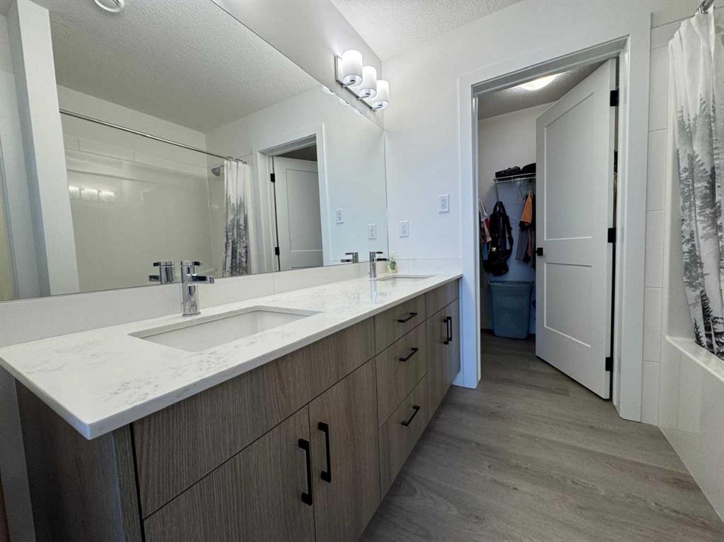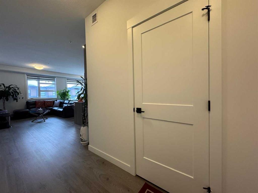 Bright and Spacious with Functional layout! Experience the comforts of modern living with this stunning 2-bedroom, 2-bathroom corner unit, loaded with upgrades, well located in Logel Homes' Livingston Views – Livingston's vibrant, growing community. This home offers easy access to airport, downtown, shopping, dining, and major highways including Stoney Trail & Deerfoot Trail. Enjoy the upgraded Executive kitchen with open design and upgraded with a premium stainless-steel appliance package; built-in wall oven and microwave cabinet tower, quartz counters, oversize center island with large undermount sink, overlooking the huge living room and dining room with patio doors to oversize balcony (20’5” x 6’2”) where you can enjoy your BBQ and decorate with your favorite patio furniture. The Spacious Master bedroom includes a large ensuite bath: with double sinks with large quartz counter, toilet with separate door and a walk in closet with door. Spacious 2nd bedroom: - with windows on both sides which is an added feature of this corner unit. 2nd bathroom upgrade includes a walk in shower with glass doors, quartz counters. Other features of this beautiful unit: - 9-Ft. Ceilings, a breathe easy with Logel Homes' exclusive fresh air intake system, in unit Air Conditioning unit, spacious entry and a large laundry room with ample storage space. This unit also comes with a titled heated underground parking and an assigned storage unit. Accessibility feature: Ram to exterior front building entrance from parking stall.