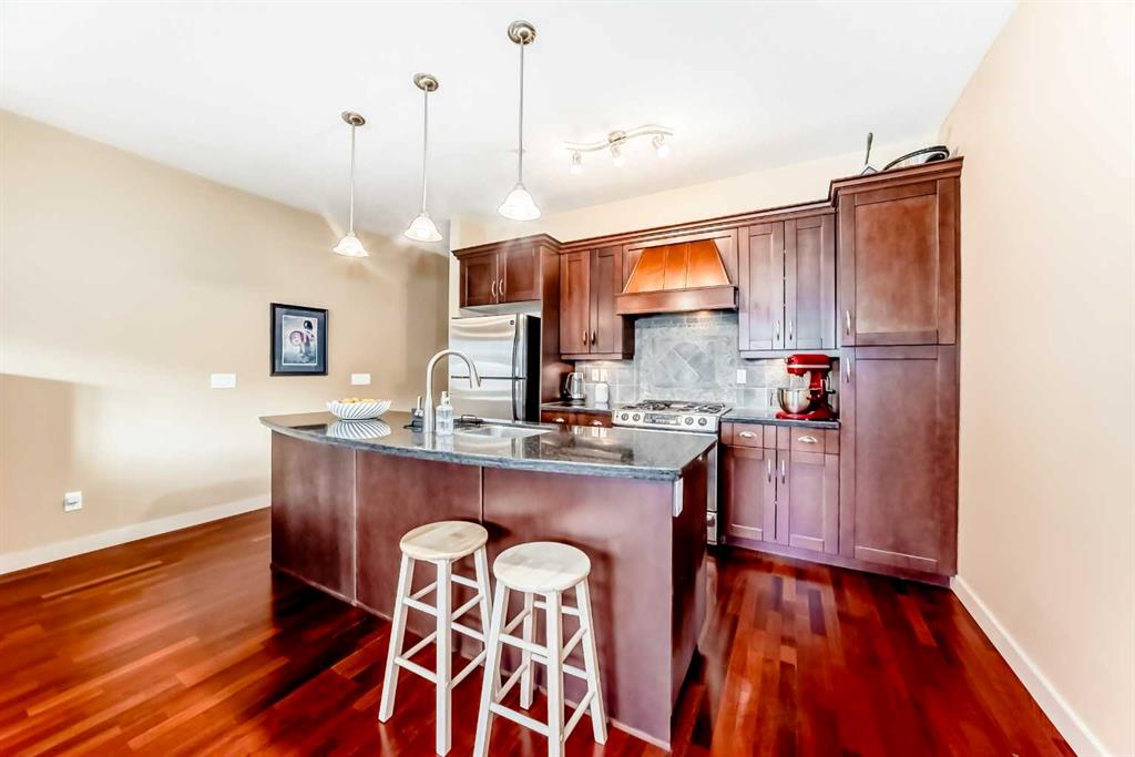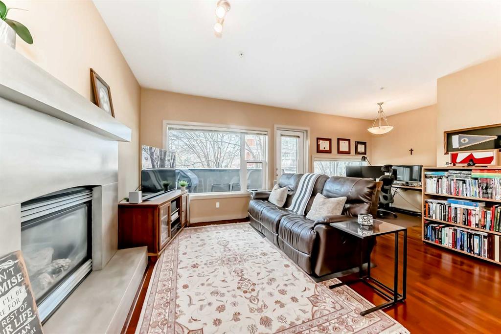 Truly a phenomenal, exceptionally walkable location for this 2 bedroom, 2 bathroom condo spread over 921 square ft with titled underground parking and a large storage locker. Enjoy the downtown lifestyle just steps to trendy 17th Ave with shops and an array of restaurants and pubs. Walk or bike downtown, along the Bow River, and the many tranquil river pathways. Plus, just a short walk to the heart of Marda Loop for additional restaurant and shopping options. Welcome home to this stylish sanctuary offering a bright and spacious layout. Chef up some culinary wonders in the large kitchen with stainless steel appliances, gas stove, and large island. Relax in your living room in front of the contemporary concrete fireplace that is bathed in sunshine from the oversized windows. The adjacent dining room (or flex space) has plenty of room for meals or the additional space you need. At the end of the day retreat to your primary bedroom with a built-in desk nook, walk-in closet, private ensuite with soaker tub and separate shower. Laundry is also conveniently located in the primary bedroom. The second bedroom is right next to the second full bathroom. This well-maintained condo has a great combination of space and location you can’t pass up. You will also enjoy the secure, gated building. This is simply a wonderful move-in ready home in an unbeatable inner-city location!