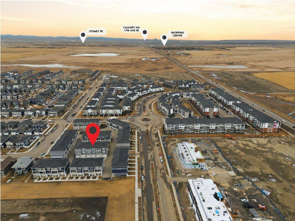 Welcome to this beautifully appointed 2-bedroom, 2.5-bath townhouse in the Chelsea community of Chestermere, built in 2023 and designed for modern living. Located in a vibrant, family-friendly community, this home offers exceptional style, comfort, and convenience. Step inside to an open and contemporary floor plan featuring bright living spaces, high-quality finishes, and thoughtful upgrades throughout. The kitchen showcases sleek cabinetry, quartz countertops, stainless steel appliances, and a spacious island perfect for cooking and entertaining. Upstairs, you'll find two generously sized bedrooms, each with its own bathroom—ideal for privacy, guests, or a roommate setup. Custom premium window blinds add a stylish touch while enhancing privacy and light control. Enjoy year-round comfort with central air conditioning, already installed for your convenience. Additional highlights include a private balcony, an attached garage, in-suite laundry, and low condo fees, making this home an excellent option for first-time buyers, down-sizers, or investors seeking low-maintenance living. Move-in ready and impeccably maintained, this 2023-built townhouse offers the best value in Chestermere living—modern, efficient, and close to parks, schools, shopping, and the lake.