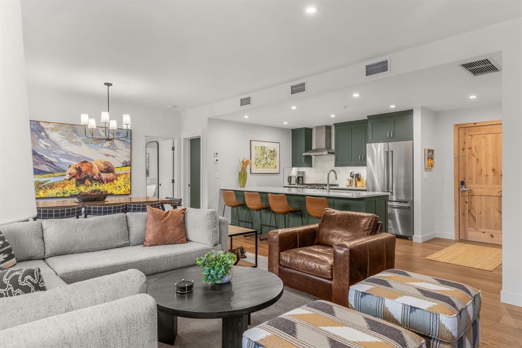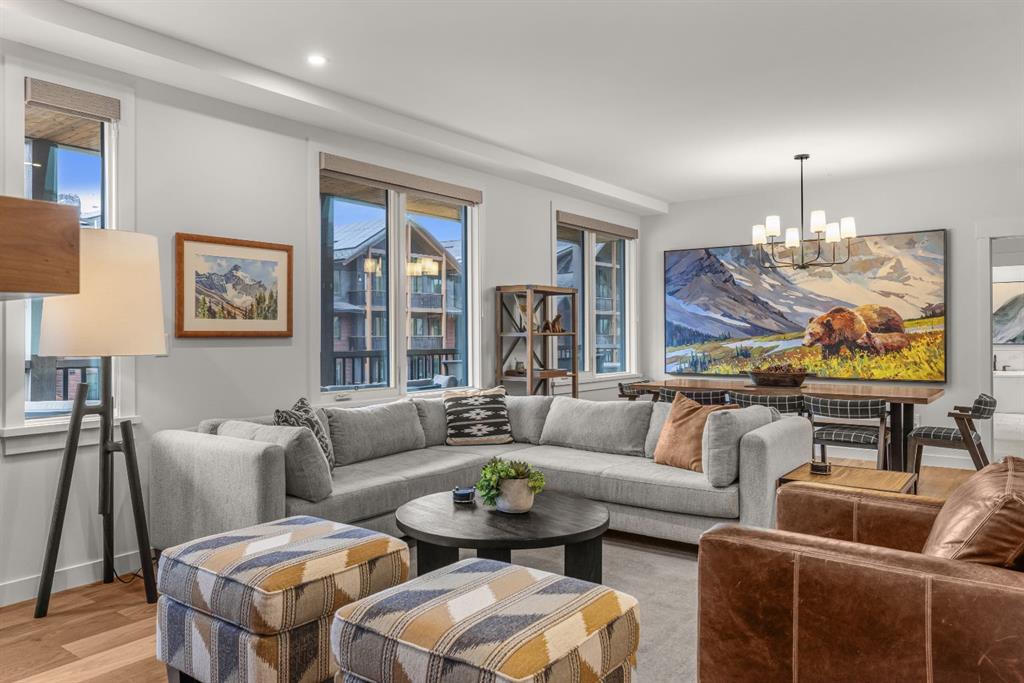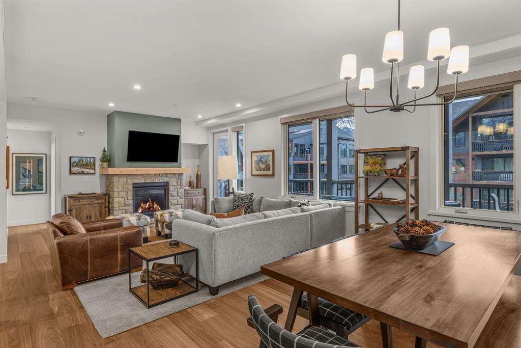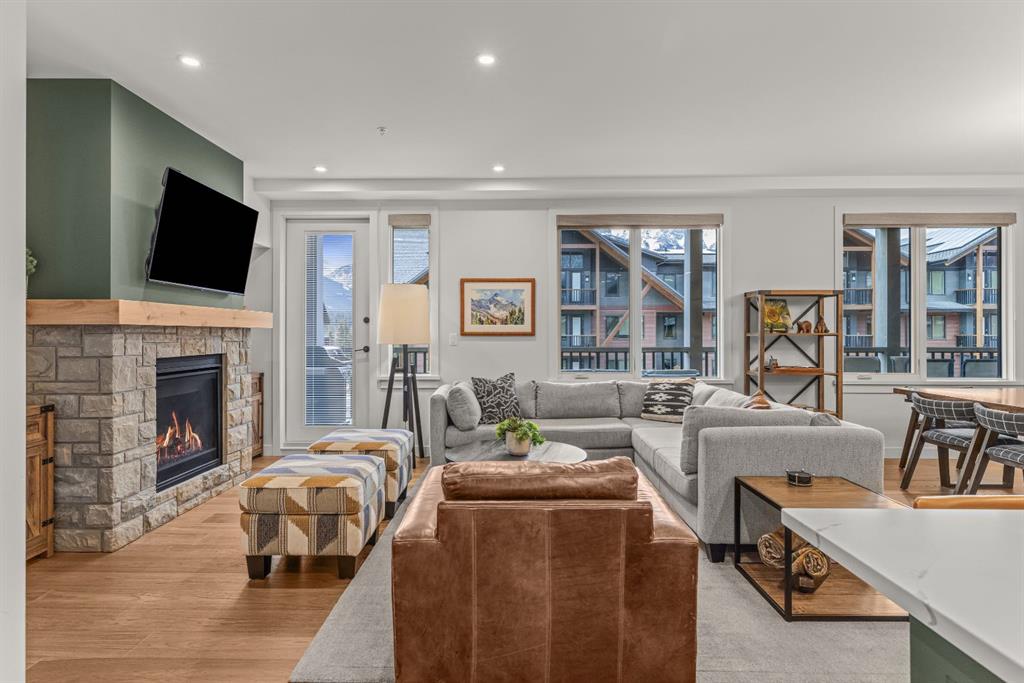 Tourist zoned and revenue-ready in Spring Creek! Across the street from Bridgette Bar and an easy scenic stroll to shops, restaurants and Main Street, Canmore. This is a rare opportunity in Timberstone Lodge, offering 4 bedrooms, 3 full bathrooms, and a southwest corner position on the third floor with scenic mountain views. Designed for guest comfort and strong short-term rental appeal, the open-concept layout features generous sized gathering spaces, a highly functional kitchen with KitchenAid stainless steel appliances, quartz countertops, and solid wood cabinetry. Step outside to an oversized covered deck (over 30 feet long!) with room to BBQ, dine, and lounge. Two spacious, primary-style bedrooms each offer beautiful ensuites. One with dual sinks, a soaker tub, and a modern curbless shower. The second includes a walk-in closet, another five-piece ensuite, and a private water closet. Two additional bedrooms and the 3rd full bath, provide a rare short term rental option for groups to enjoy the convenience of staying together in one property. Underground heated parking and storage complete this amazing opportunity. Spring Creek’s superior craftsmanship includes BUILT GREEN certification, with geothermal heating and cooling. Enjoy Timberstone’s amenities including an outdoor hot tub with mountain views and a fitness room, plus an unbeatable Spring Creek lifestyle. A standout short-term rental package in one of Canmore’s most in-demand vacation rental spots!