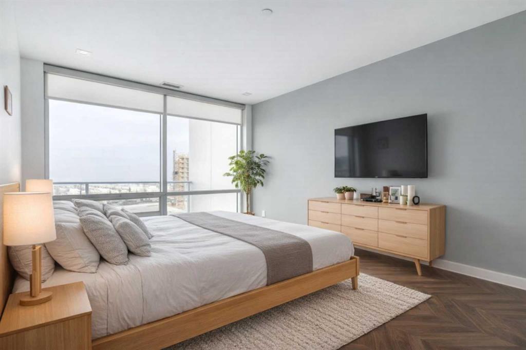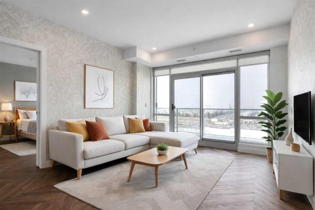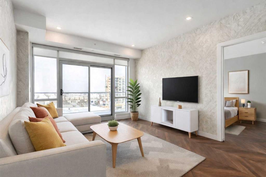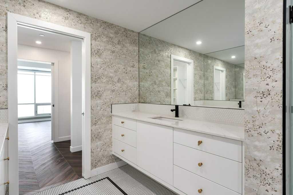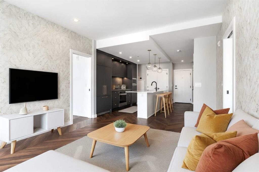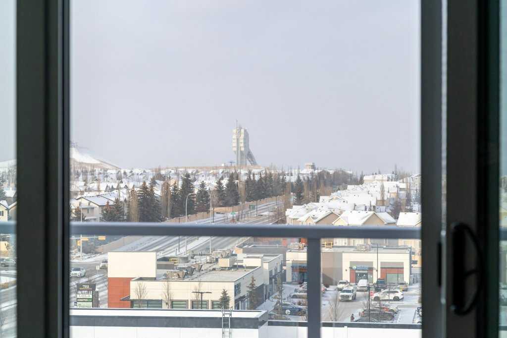 Experience elevated living in this stunning sub-penthouse condo in the heart of West District, Calgary’s most exciting new master-planned urban community on the west side. With nearly 1,000 sq. ft. of thoughtfully designed living space, this home blends luxury, comfort, and convenience in a way that’s hard to find. Inside, the layout is exceptionally functional boasting two spacious bedrooms, each with its own private 4-piece ensuite—perfect for guests, roommates, or a refined primary suite plus dedicated office. A separate powder room, offering added convenience rarely found in condos of this size. Luxury vinyl plank flooring throughout the main living areas for durability and style and unique mosaic tile flooring in the bathrooms, adding texture and a designer touch. The open-concept kitchen and living area flow seamlessly toward an expanded north-facing deck, where you and your guests will enjoy unobstructed views, including a direct sightline to the iconic Calgary Olympic ski jump. Whether you’re entertaining or unwinding, this outdoor space becomes an extension of your home. As a sub-penthouse, this unit offers the rare advantage of no upstairs neighbours, creating a quiet, peaceful retreat above the energy of the city. Step outside and you’re immersed in the vibrant lifestyle that defines West District. This elite, walkable neighbourhood offers trendy coffee shops, numerous restaurants and boutique stores, and a brand-new grocery store right across the street. The cherry on top is definitely newly-opened Radio Park; a beautifully designed urban green space perfect for relaxation, recreation, and community connection Although set in the suburbs, West District offers unmatched accessibility. You’re minutes from downtown, steps from Calgary’s new ring road, and less than an hour from the world-famous Rocky Mountains—making weekday commutes and weekend adventures equally effortless. This condo delivers the perfect blend of luxury finishes, thoughtful design, and an unbeatable location. It’s not just a home—it’s a lifestyle.