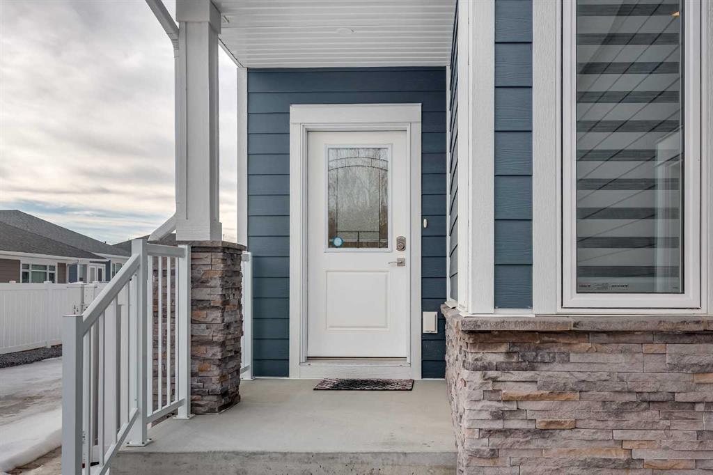 This property is an exceptional opportunity that you will not want to miss! Located in the quiet and desirable 55+ age restricted community of Riverside Estates, this residence demonstrates exceptional pride of ownership. This immaculate custom built bungalow villa is ideally suited to the discerning buyer looking for value, quality and great community. This property is not a condominium but does have an HOA fee of $150 per month which includes lawn care, snow removal and communal area maintenance. No more shoveling or mowing for the new homeowner. The exterior showcases hardiboard siding accented with stonework, spacious double car garage with high ceilings and a quality Lift Master garage door opener. The yard is fully landscaped with the convenience of automatic underground sprinklers and vinyl fence. The thoughtful design of this home provides an open concept layout designed to maximize natural light. Inside the home offers numerous amenities in its open design including a handy entry closet at the front door, a u-shaped kitchen equipped with extensive counter space, elegant hickory cabinetry, and glass tile backsplash finishes. Storage is optimized throughout the kitchen and the convenient laundry/mudroom. The adjacent dining area and expansive kitchen create an ideal environment for daily living and entertaining guests. The master bedroom accommodates all your bedroom furniture and features walk in closet as well as a four-piece ensuite. Note the transom windows and custom arched doorways. Conveniently located off the garage is the main floor laundry, complete with over head cabinets, an additional closet and a two-piece bathroom. Additional highlights include a second bedroom with two windows, ensuring ample natural light throughout the home. Of course, if you prefer, this multifunctional space could be a den, sewing room, office or craft room- whatever your heart desires. All window blinds have been professionally installed, with additional custom window coverings provided in the living room. The unfinished basement is begging to be developed and is equipped with bathroom rough in, efficient mechanicals and a water softener, ready for your plans. The spacious covered low maintenance deck is perfect for relaxing or entertaining. The landscaped communal area to the rear offers a gazebo for resident enjoyment.