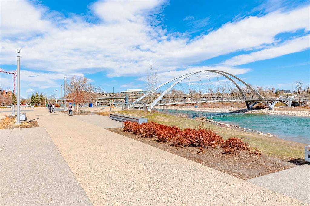 Experience elevated urban luxury in the heart of Downtown East Village at the prestigious Evolution Condos. This beautifully appointed 2-bedroom, 2-bathroom residence offers 891 sq. ft. of refined living space designed for both comfort and sophistication. The open-concept layout is enhanced by expansive windows, filling the home with natural light and showcasing breathtaking city and river views. At the heart of the home is a chef-inspired kitchen featuring granite countertops, a large central island perfect for entertaining, and a gas stove, complemented by sleek cabinetry and modern finishes. The spacious primary bedroom includes a private 5-pc ensuite, while a well-proportioned second bedroom and full bath provide flexibility for guests or a stylish home office. Underground parking and a secure storage locker add everyday convenience. Residents of Evolution enjoy hotel-inspired amenities, including a state-of-the-art fitness centre with sauna and steam room, an elegant party room, rooftop patio with dual BBQ stations, central air conditioning, and 24-hour concierge service. Perfectly located just steps from the Bow River Pathway and St. Patrick’s Island, this home offers unparalleled access to outdoor recreation, walking, jogging, and cycling. Surrounded by premier dining, boutique shopping, entertainment, and public transit, this is downtown Calgary living at its most refined. This residence offers far more than condo living—it delivers an elevated lifestyle connected to the river and the heart of the city. Schedule your showing and make it yours.