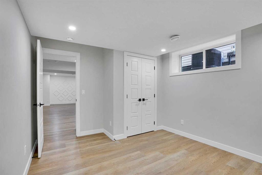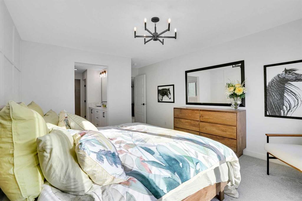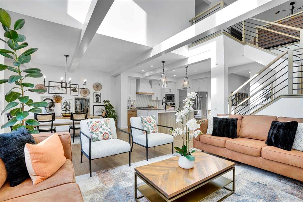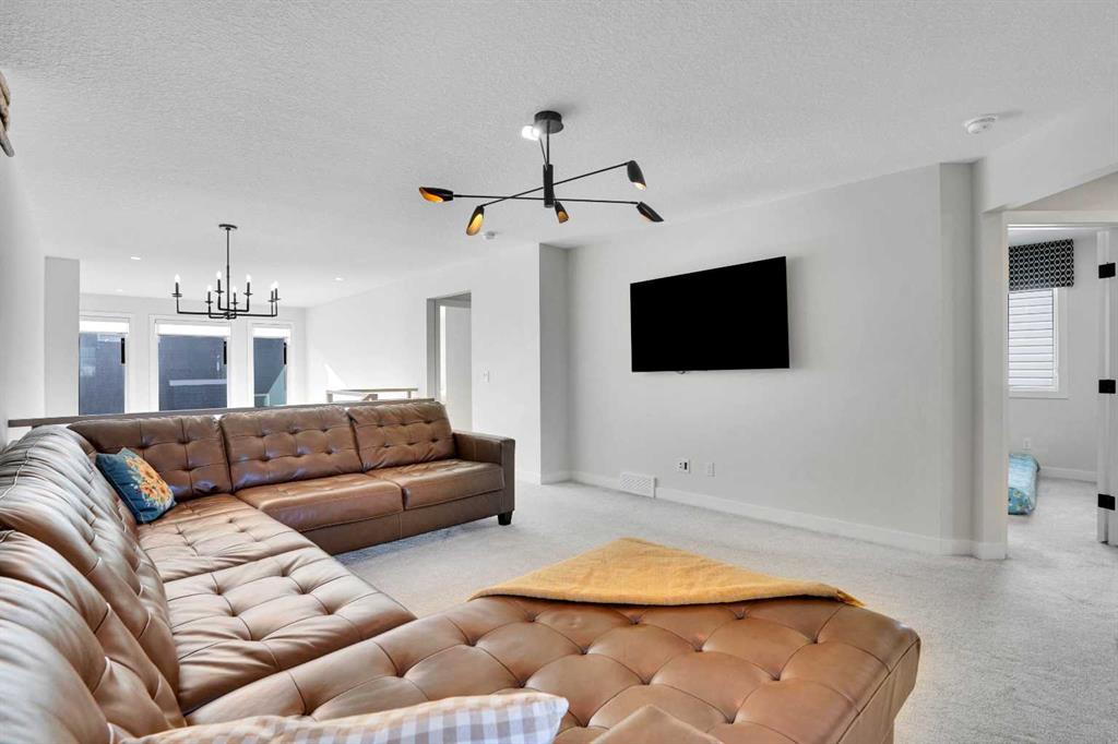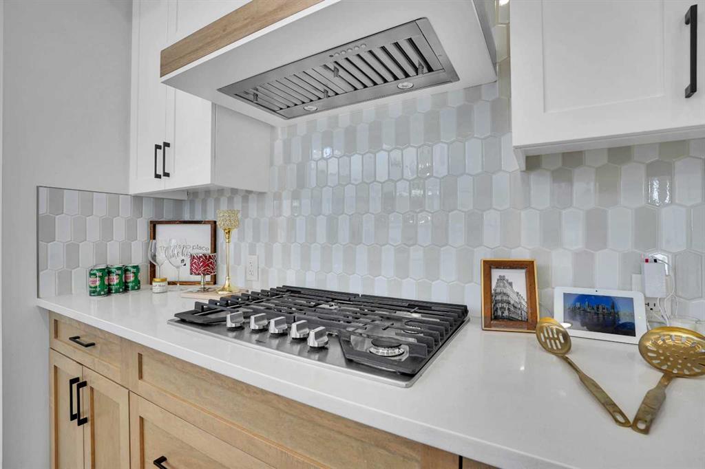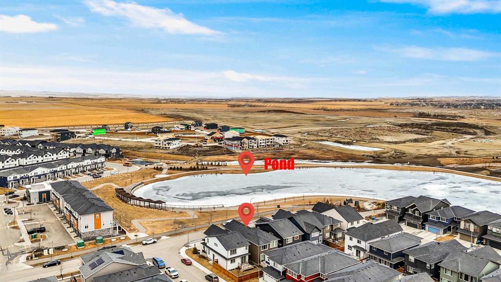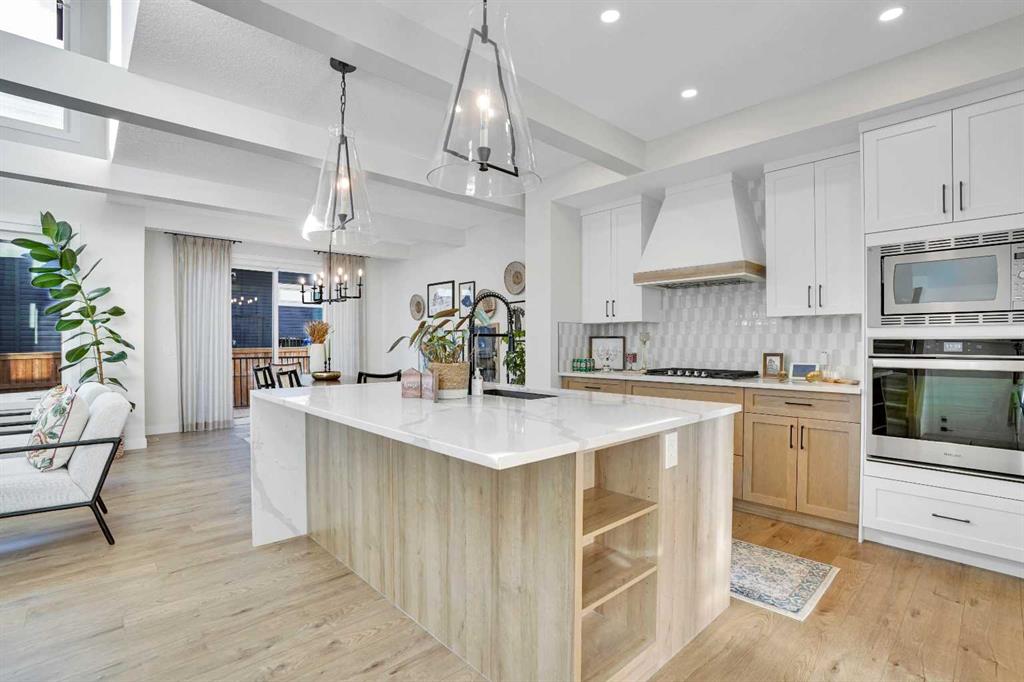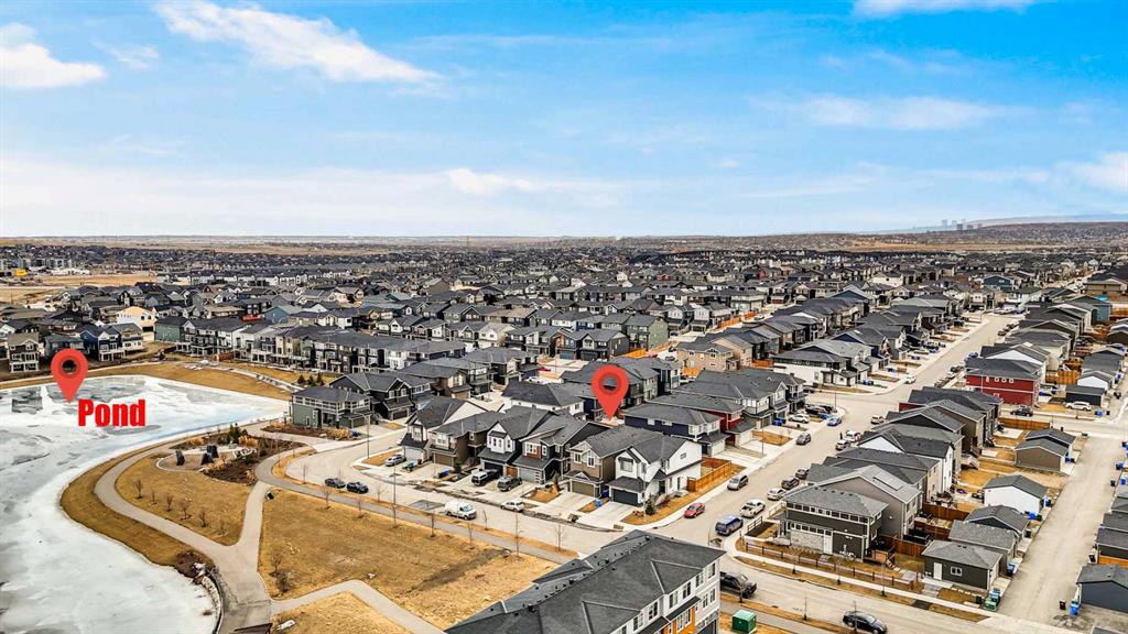 Pond-facing and fully upgraded, this exceptional detached 2-storey home in Moraine offers over 3,400 sq. ft. of total developed living space, thoughtfully designed for modern families and long-term investment potential. Set on a conventional lot with a double front-attached garage, this residence combines premium finishes, functional design, and an unbeatable location overlooking green space, waterfront, walking paths, and a playground. The main level welcomes you with an open foyer and a bright, open-concept layout anchored by a chef-inspired kitchen featuring a gas range, stainless steel appliances, upgraded cabinetry, expansive quartz island, and generous counter space. A walk-through pantry provides seamless access from the garage, while the separate spice kitchen adds everyday convenience. A main-floor office or bedroom paired with a full bathroom offers excellent flexibility for guests or multigenerational living. Upstairs, the home is complete with four spacious bedrooms, a central bonus room, and upper-level laundry. The primary retreat is well-appointed with a private ensuite, while the additional bedrooms provide ample space for a growing family. The finished basement includes a legal 2-bedroom suite with a separate entrance and full bathroom, offering strong short term rental or extended-family potential (subject to City of Calgary rules and approvals). Additional highlights include air conditioning, upgraded HVAC and insulation, a rear deck for outdoor enjoyment, and luxurious curtains and window coverings included. This property benefits from the Ambleton Owners Association (AOA), which helps maintain safe, clean, and family-friendly parks, pathways, and green spaces. Community rules promote courtesy, smoke-free public areas, and well-maintained amenities, contributing to strong curb appeal and long-term property value. Ideally located near schools, parks, transit, shopping, and major roadways, this home delivers both lifestyle appeal and everyday convenience.