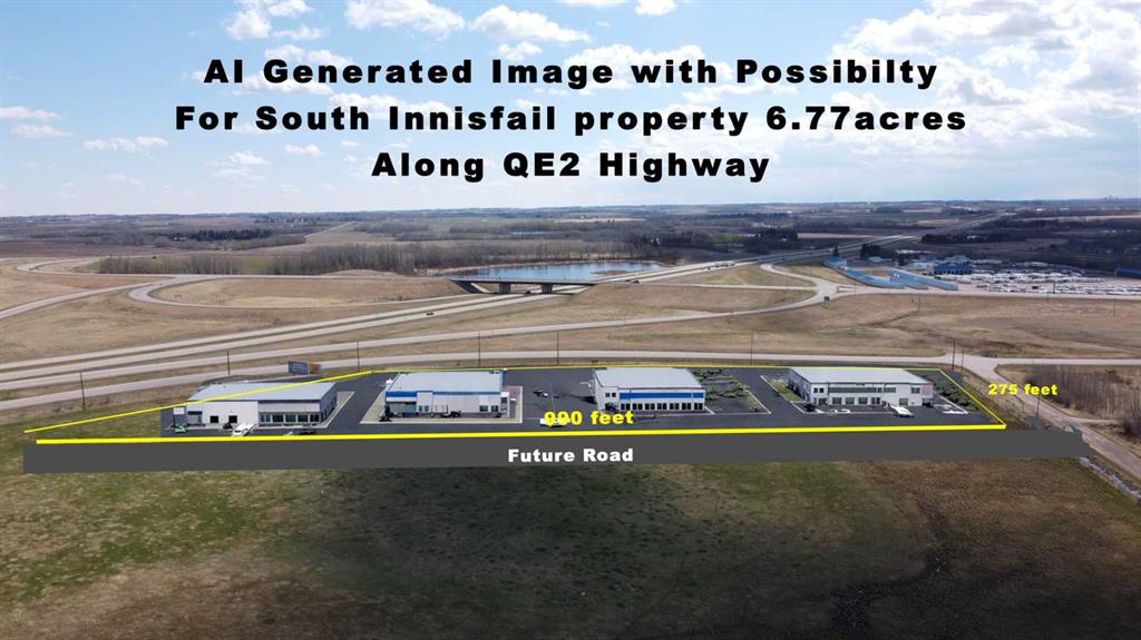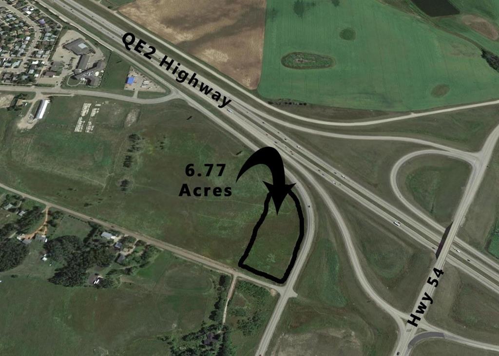Exceptional highway commercial development opportunity on the south end of Innisfail, offering 6.77 acres. This highly visible property faces the QE2 Highway and the Highway 54 overpass, providing outstanding exposure along one of Alberta’s busiest transportation corridors. The site benefits from strong traffic counts, excellent access, and prominent signage potential. The land is zoned for future development and identified for highway commercial use, making it ideal for a wide range of commercial, service, or investment developments, subject to Town of Innisfail development approval, offering flexibility for owner-users or phased projects. Vendor financing is also available, creating an attractive opportunity for developers and investors seeking a high-profile highway location in a growing Central Alberta community.