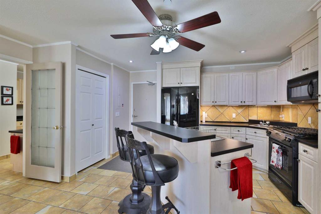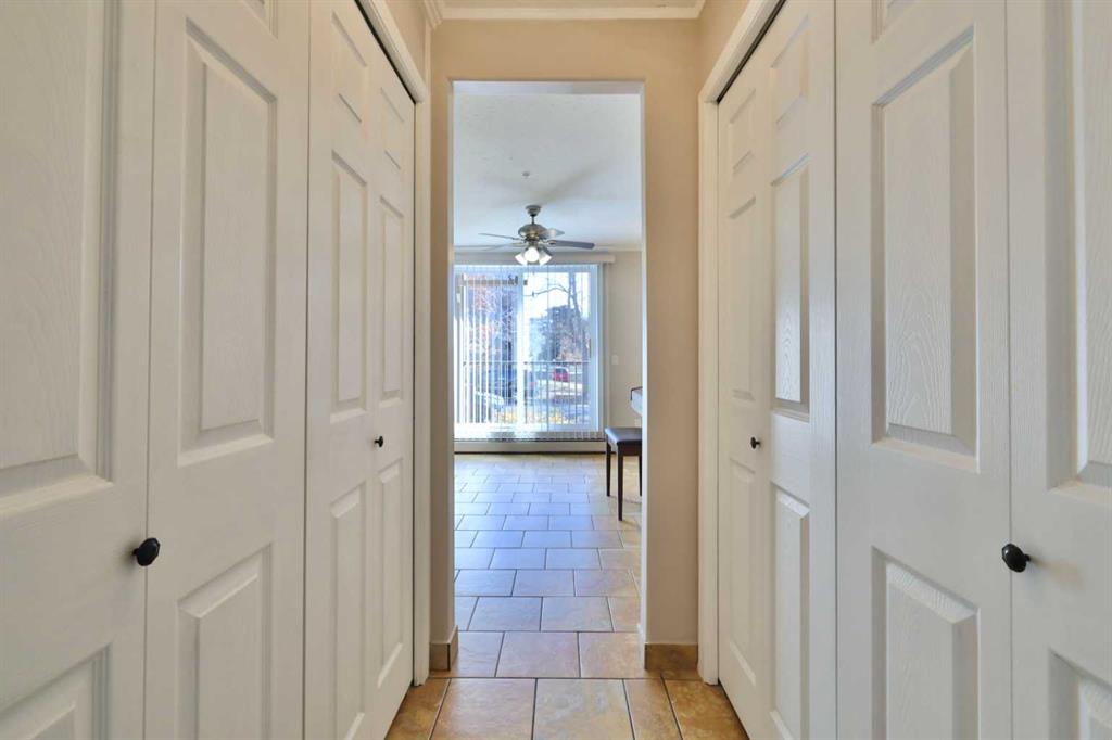 Welcome to Fieldstone Place Condomium and this Lovely 1 Bedroom Suite. Fieldstone is mere steps to all the pathways around Mirror Lake and just a block to all the downtown shopping and festivities. Once you're in the Beautiful Building and past the mailboxes, you'll find this main floor home. It has a nice open floor plan with just enough kitchen cabinetry, handy island, eating area and living room. You can even enjoy the cozy corner gas fireplace on those cool days and appreciate the A/C on the warm ones. From here there are patio doors out to the covered East facing deck, complete with overhead heaters and BBQ gas hook-up. Back inside, you'll find the primary bedroom which has double closets, shoe organizer closet and again, access to the East facing deck. Completing the suite is a 3 pc. washroom (w/ walk-in shower and washroom heater) and the laundry space. Again, with neat organizers in the cupboard. You'll love that you never have to leave the building to get to your vehicle that is securely parked in the underground parkade as well as the secure storage space. Ohhhh! and when you want a little more space to gather the family, you will LOVE the "Sunset Lounge" on the 4th floor with a small kitchen, numerous tables, another fireplace AND a huge West facing deck! Take a look at what carefree condo living can look like! (Building is Adults 55+)