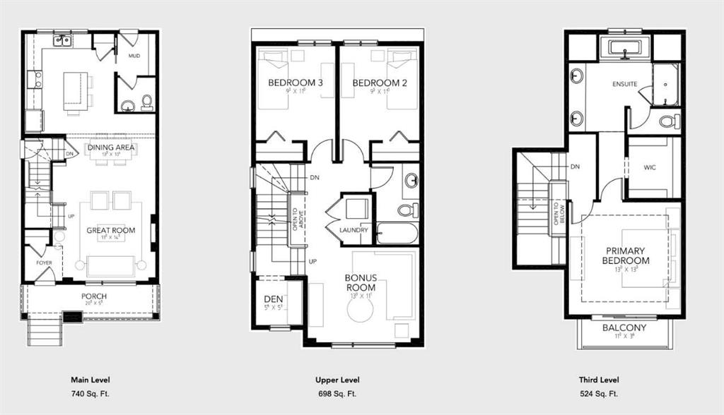 Scheduled tentatively for early 2026 possession, 28 Bluerock Terrace SW features the Skyline model by Calbridge Homes in the desirable Alpine Park community. This thoughtfully designed 1,962 sq ft home offers 3 bedrooms and 2.5 bathrooms across a unique three-level layout. The main floor welcomes you with a spacious front porch and an open living area anchored by an L-shaped kitchen with a window above the sink and a large central island—ideal for everyday living and entertaining. The upper level includes two bedrooms, a versatile bonus room, and a den, providing flexible space for work or relaxation. The entire third level is dedicated to the private primary retreat, complete with a balcony offering a quiet outdoor escape. A double attached garage adds everyday convenience. Located close to parks, pathways, and future amenities, this home blends modern design, privacy, and functional living in one of southwest Calgary’s most exciting communities. Photos are representative.