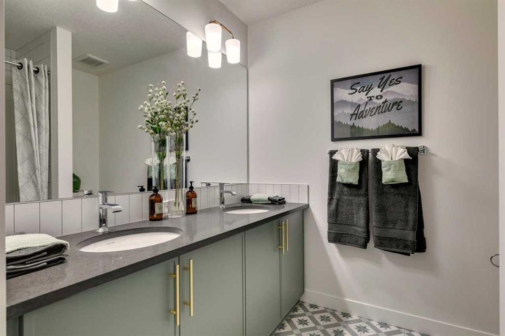 Built by Sterling Homes, this home showcases on-trend, designer-curated interior selections tailored for a home that feels personalized. Energy efficient and smart home features. Built to 2025 specifications, this home features an open-to-below layout, extra windows throughout, and an electric fireplace with maple floating shelves. The executive kitchen offers built-in stainless steel appliances, a built-in chimney hoodfan, gas cooktop, under-cabinet lighting, pendant lighting, waste-bin pull-out, and a walk-through pantry. Enjoy a rear deck with glass railing and BBQ gas line, a main floor flex room with double doors, and a mudroom with flip-top bench, coat racks, and cubbies. Upstairs features a vaulted bonus room and a primary bedroom with wall detail, a 5-piece ensuite with freestanding tub, fully tiled shower with two glass walls, heated floors, and a bank of drawers, plus tiled flooring in upper baths and laundry. This energy-efficient home is Built Green certified and includes triple-pane windows, a high-efficiency furnace, and a solar chase for a solar-ready setup. With blower door testing that may be eligible for up to 25% mortgage insurance savings, plus an electric car charger rough-in, it’s designed for sustainable, future-forward living. Featuring smart home technology, this home includes a programmable thermostat, ring camera doorbell, smart front door lock, smart and motion-activated switches—all seamlessly controlled via an Amazon Alexa touchscreen hub. Photos are representative.