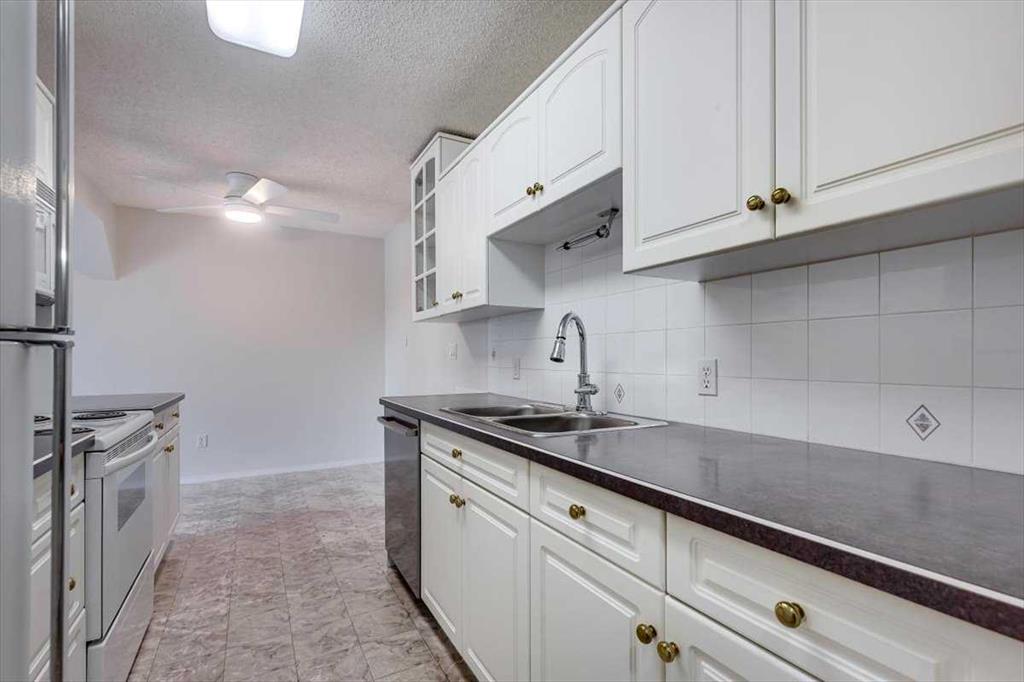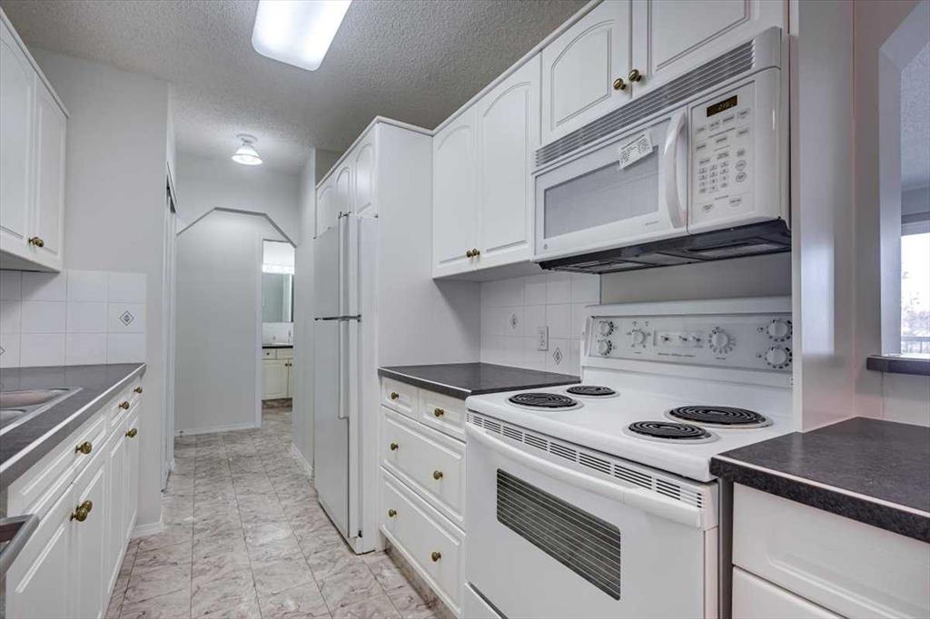 Welcome to Imperial Place II, a secure and well-maintained 45+ adult-oriented building ideally located in the heart of Red Deer. This top-floor, east-facing one-bedroom condo offers 641 sq ft of thoughtfully designed space, filled with natural morning light and an easy, low-maintenance lifestyle. The functional galley-style kitchen is equipped with a full appliance package, including a built-in dishwasher and microwave, and flows seamlessly into a comfortable dining area and bright living room. Cozy up by the gas fireplace, enjoy the convenience of wall-mounted A/C, or step outside to the private balcony with gas BBQ hookup—perfect for relaxed mornings or casual evenings. The bedroom is generously sized and serviced by a four-piece bathroom, while in-suite storage and an additional assigned storage locker in the basement provide practical everyday convenience. Complimentary shared laundry is located just down the hall on the third floor. The suite has been recently refreshed and professionally maintained, offering a move-in-ready feel. Updates include a new ceiling fan and LED lighting in the kitchen, a freshly painted gas fireplace using heat-resistant paint, and professionally painted interior doors, trim, walls, and closets throughout. Carpets have been professionally cleaned, and the kitchen and bathroom lino floors have been thoroughly cleaned and refreshed, adding to the bright, well-cared-for presentation. Residents enjoy secure entry, elevator access, and heated underground parking with an assigned stall, adding comfort and peace of mind year-round. The location truly shines—walk to downtown shops, restaurants, coffee spots, professional services, the Red Deer Public Library, Recreation Centre, and Farmers’ Market. Outdoor enthusiasts will appreciate being minutes from the Waskasoo Park trail system, with over 80 km of paved and natural pathways connecting to Barrett Park, Rotary Park, and the Red Deer River. A fantastic opportunity for those seeking convenient, lock-and-leave living in a central, walkable community.