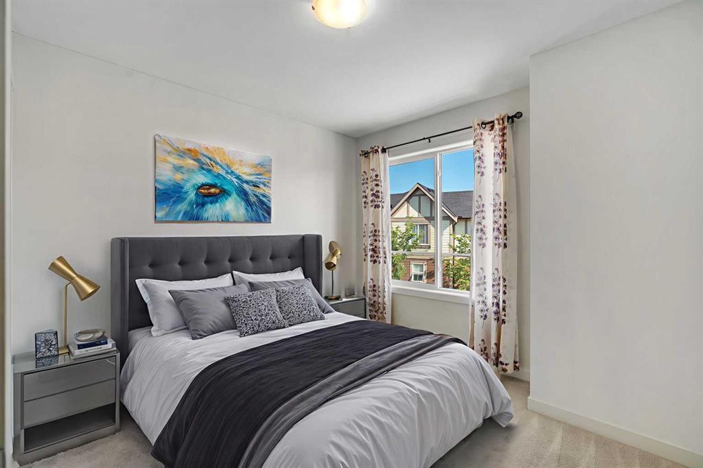 **STEPS TO SCHOOL** | Located in a family-friendly neighborhood just steps from Blessed Marie-Rose School and minutes from Costco, T&T, H-Mart, and Beacon Hill Shopping Centre, this **3-Bedroom, 2.5-Bath townhome** is ideal for growing families or first-time homebuyers. Offering **1,575 sq. ft. of modern, functional living space**, this home blends style, comfort, and everyday convenience in a highly desirable location. The main floor features a bright **open-concept layout with 9-ft ceilings** throughout. The well-appointed **kitchen** showcases a center island with eating bar, **quartz countertops**, and **stainless steel appliances including a gas stove**, flowing seamlessly into the dining area with access to a **balcony with gas hookup**—perfect for family meals and entertaining. The living room is filled with natural light, creating a warm and welcoming space for relaxing or gathering with loved ones. A convenient **2-piece bath** completes this level. Upstairs, the spacious **primary bedroom** offers two closets and a **4-piece ensuite** with quartz countertop. Two additional well-sized bedrooms share a **4-piece bath**, while **upper-level laundry** adds everyday convenience. The entrance level features a versatile **home office or gym space** with direct access to an **extra-deep single attached garage**, providing excellent storage for shelving, bikes, or a workbench. With its thoughtful layout, modern finishes, and prime location close to schools, shopping, and major routes including **Stoney Trail**, this move-in-ready home offers outstanding value in a vibrant, family-oriented community.