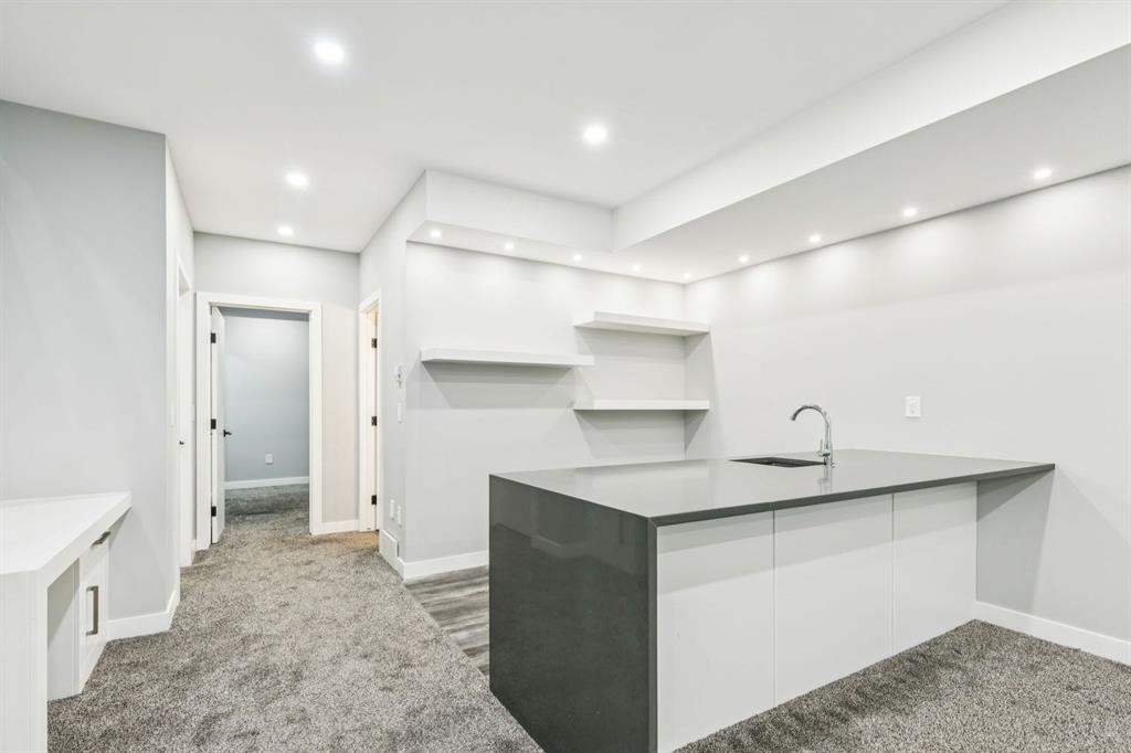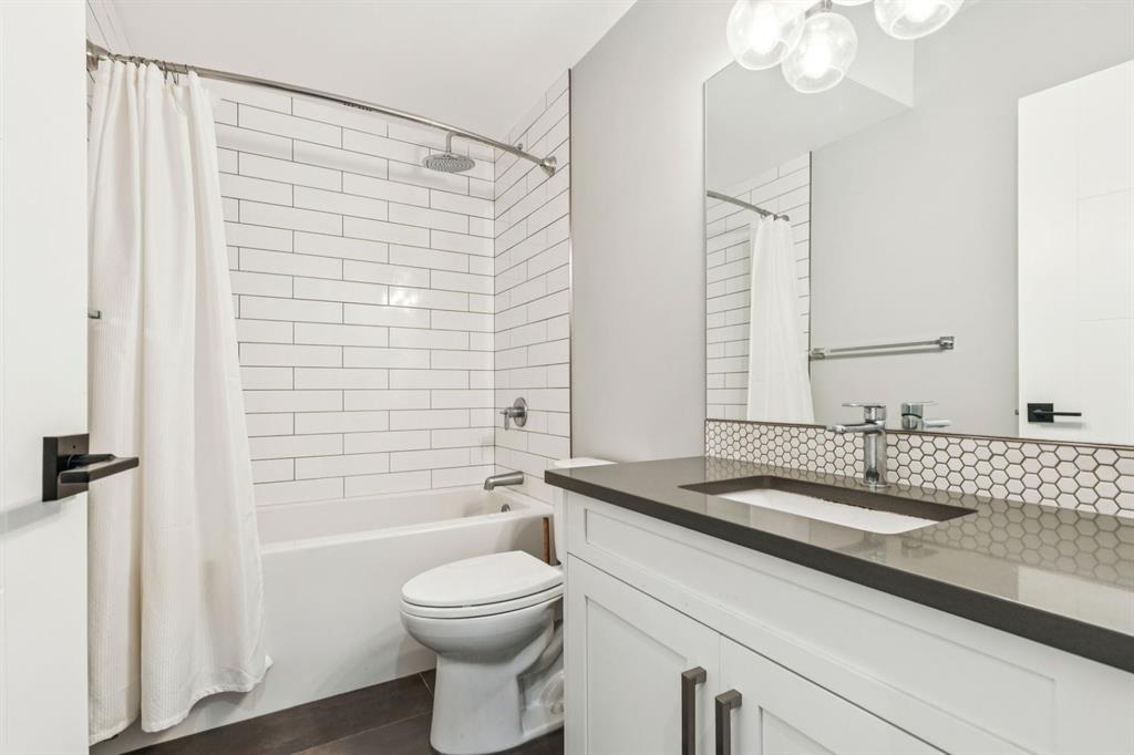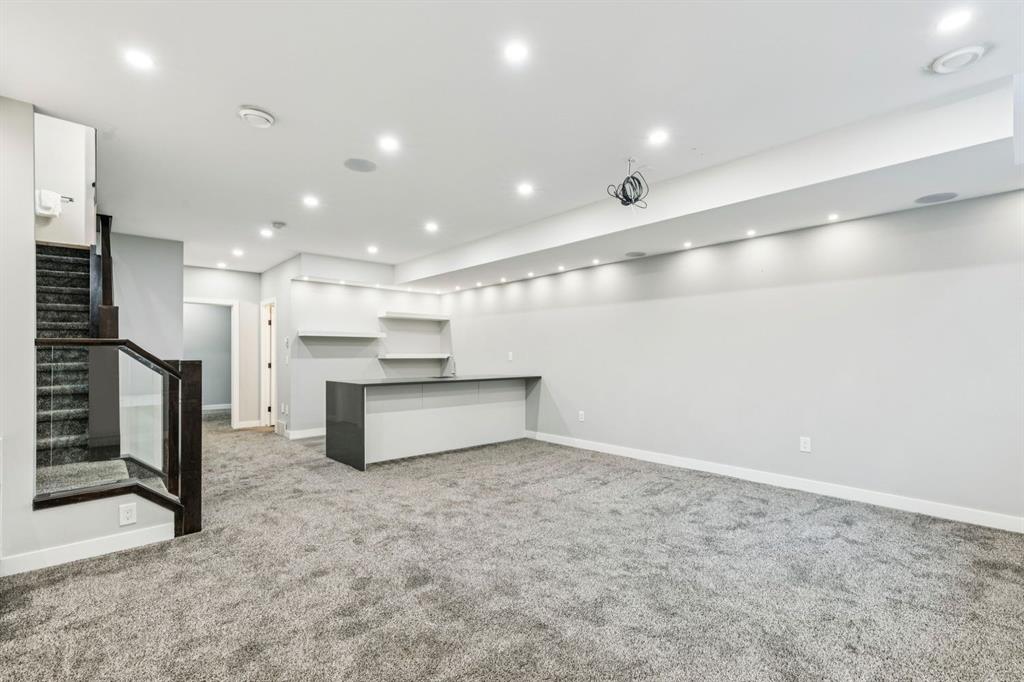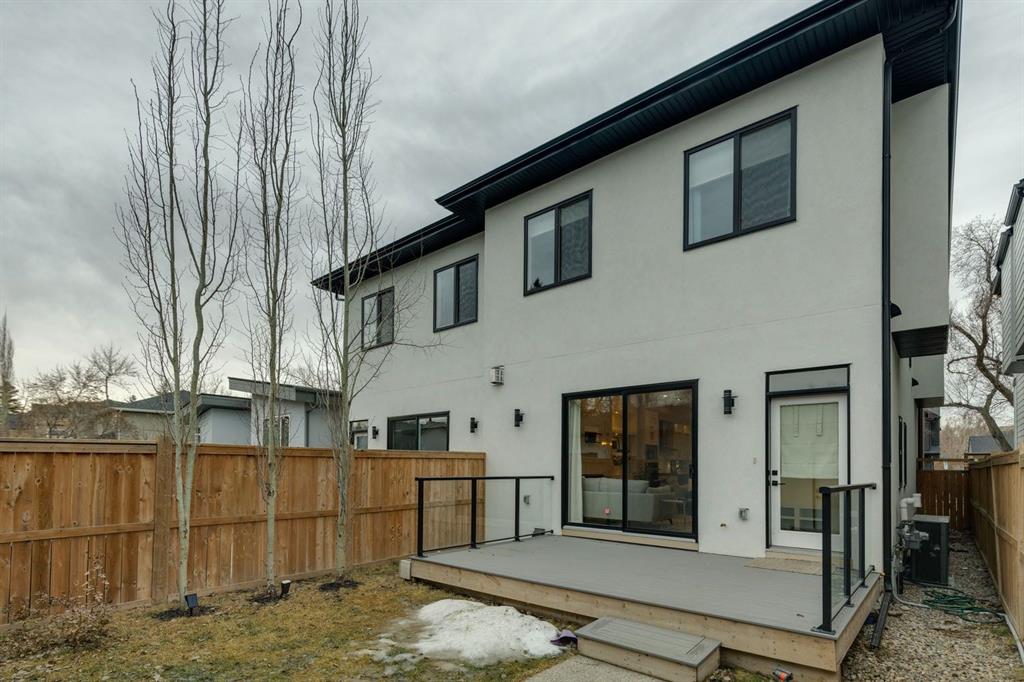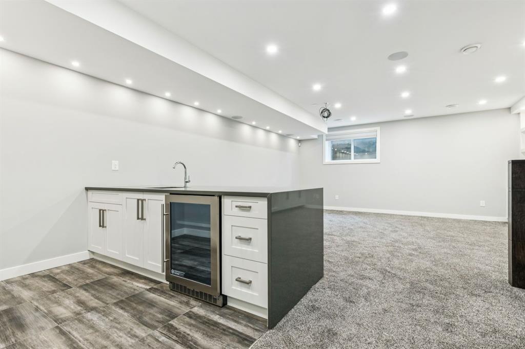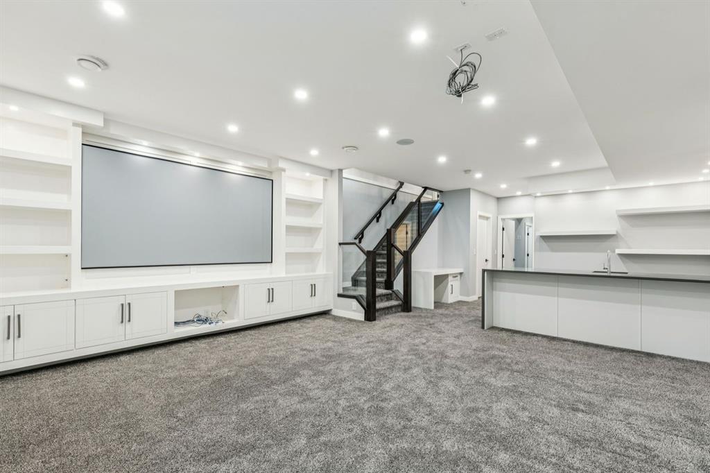 Proudly presenting this incredible family home ideally located in a welcoming, family friendly community just steps from Westmount Charter school, parks, and the Bow River pathway system. Offering over 2,700 sq ft of thoughtfully designed living space, this home blends modern luxury with everyday functionality. Stunning wide plank hardwood floors flow throughout the main and upper levels, while custom built-ins are seamlessly integrated throughout the home, adding both beauty and practical storage. The main floor is designed for connection with a beautifully panelled dining room, and centrally located chef’s kitchen ideal for gathering and entertaining. Highlights include white shaker cabinetry with glass accents, expansive waterfall quartz countertops, elegant pendant lighting, a high end Jenn-Air 6 burner gas cooktop and wall oven, and a premium kinetic water system. The inviting living area is showcases a sleek linear gas fireplace anchored by built-ins and a sliding glass door opens to a spacious composite deck, extending your area of entertainment. A tiled mudroom with built-in bench and abundant storage keeps daily life organized and stress free. Upstairs, natural light pours in through a large skylight, illuminating open riser stairs with glass railings and a bright second level that includes three generous bedrooms, a full bathroom with heated floors, and a convenient laundry room with sink. The primary retreat offers a peaceful escape with soaring ceilings, a large floor to ceiling picture window, custom walk-in closet, and a lavish ensuite featuring heated tile floors, a soaker tub, skylight, and tiled shower with bench and dual shower heads. The fully developed lower level is perfect for family movie nights and entertaining, featuring a large recreation room with built-in media wall, full bar with island seating and beverage fridge, a fourth bedroom, and a full bathroom. Additional lower level upgrades include rough-ins for Vacuflo, in-floor heating, and speakers. The backyard is thoughtfully designed for relaxation, with a large deck that flows into green space and leads to a double detached garage. Located close to Helicopter Park, Foothills Hospital, an off-leash dog park, and the Bow River Pathway system, this home offers an unbeatable lifestyle for families who value community, nature, and convenience. A prime opportunity to own a truly exceptional home in a welcoming neighbourhood, don’t miss it.