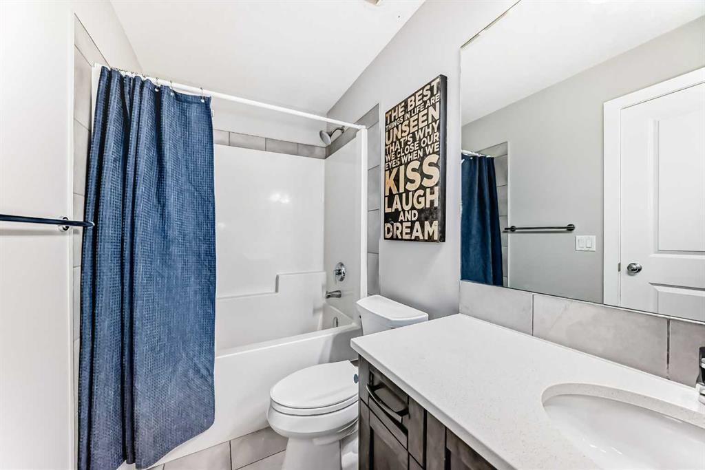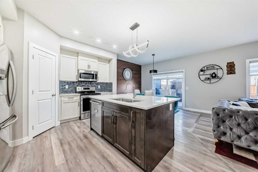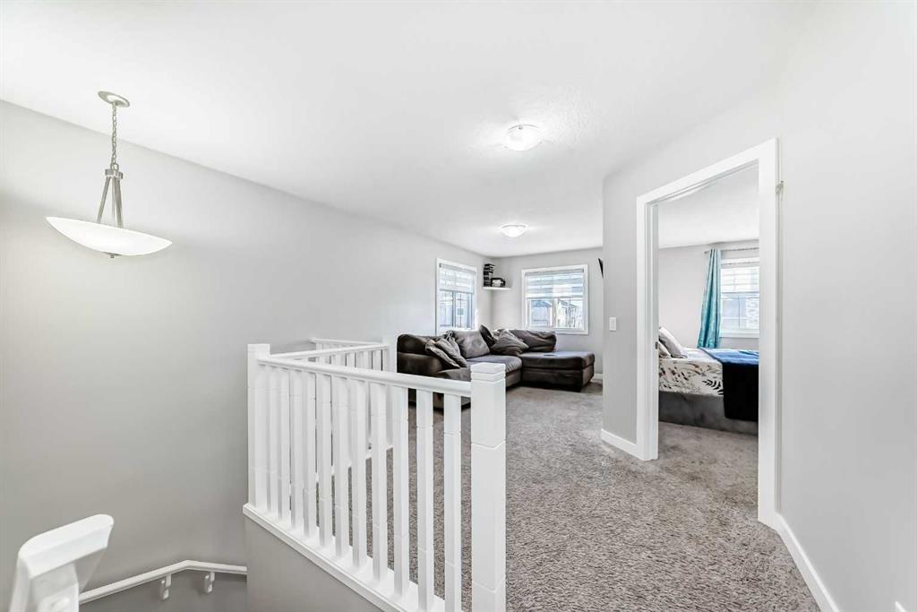 OPEN HOUSE, SUNDAY, APRIL 12-2PM****Located in one of Chestermere’s most sought-after communities, Kinniburgh, this upgraded semi-detached home offers both style and functionality. A spacious front entry welcomes you with an immediate sense of light and openness. The main level features durable vinyl plank flooring throughout, a large laundry room with potential for additional storage. There is a convenient half bath located off the garage entry. There is an open-concept connecting the living room, dining area, and kitchen. The kitchen is finished with white cabinetry, upgraded stainless steel appliances, quartz countertops, an upgraded backsplash, a corner pantry, and a large working island with eating bar. The living room has a corner gas fireplace with an upgraded tile surround, while a feature wall in the dining area adds a stylish focal point to the space. Custom blinds have been installed on main level, and the home is equipped with central air conditioning. The home was also re painted . Upstairs, you’ll find a cozy bonus room, three well-sized bedrooms, and thoughtful design throughout. The master bedroom is generously sized and includes a large walk-in closet and a four-piece ensuite. The two additional bedrooms offer ample closet space.. The fully developed basement adds even more living space, featuring a large bedroom, a spacious recreation room, and another four-piece bathroom. A versatile area at the base of the stairs provides the perfect spot for a home office or study nook. Several light fixtures have been upgraded, including the addition of pot lights in the kitchen. The main entrance provides direct access to the double attached garage, and the home offers excellent street appeal. Ideally located close to East Village amenities and just minutes from all that downtown Chestermere has to offer, this home combines comfort, upgrades, and an unbeatable location.