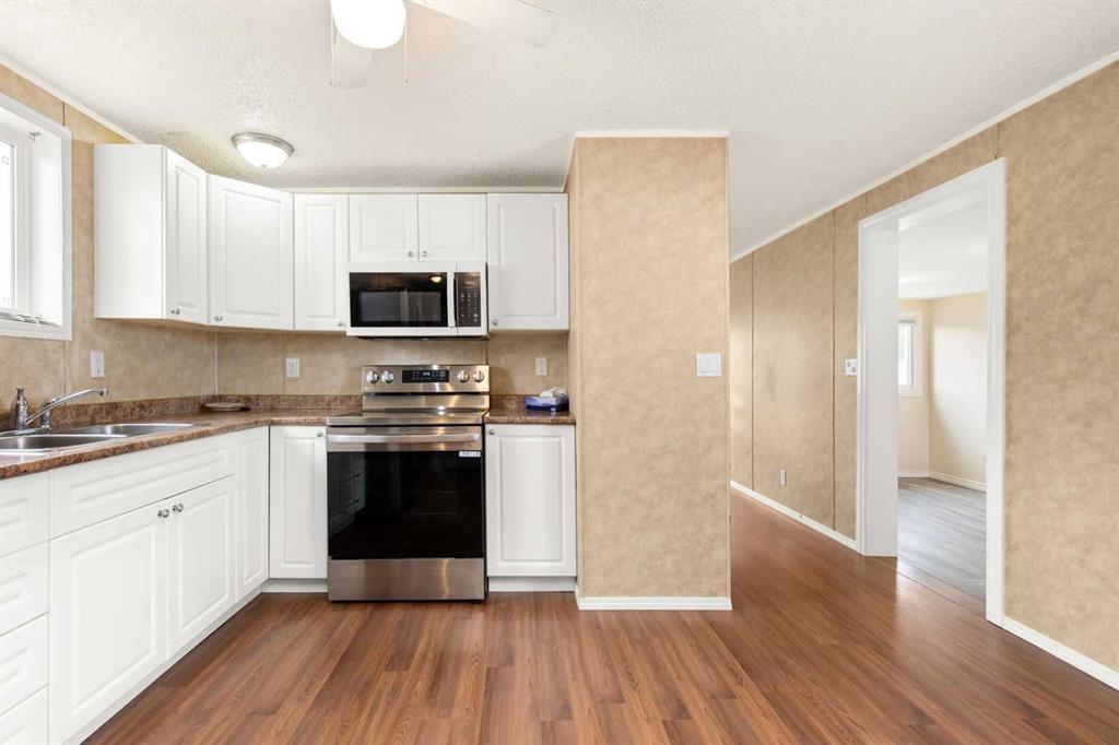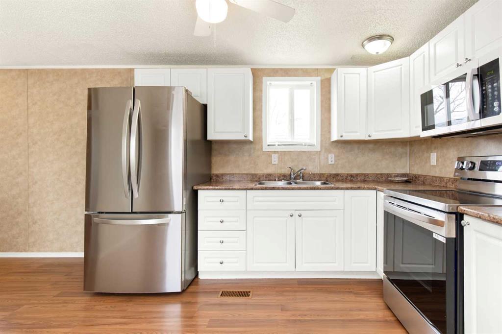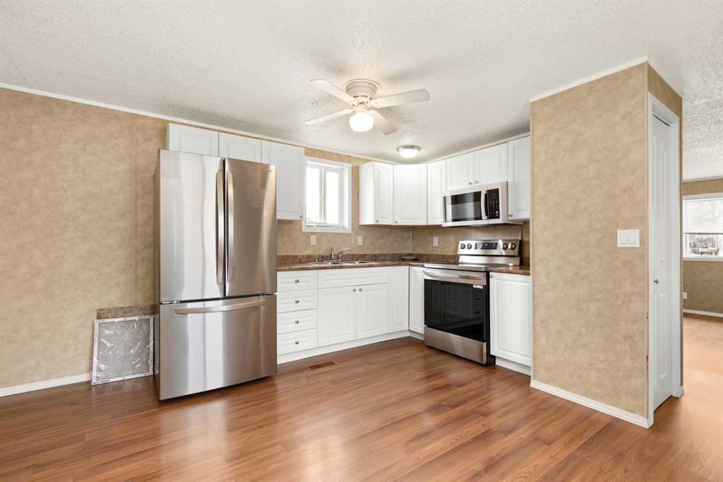 Welcome to this well-maintained 3 bedroom, 1 bathroom mobile home offering comfortable and affordable living with several recent updates. Since 2021, the home has seen improvements including central air conditioning, new flooring, new eavestroughs, and the addition of a new shed for extra storage. The hot water tank was replaced this year, and the kitchen and laundry appliances—including the fridge, stove, washer, and dryer—are all approximately one year old. With a functional layout and key mechanical updates already taken care of, this home is move-in ready and ideal for first-time buyers, downsizers, or anyone looking for an easy-to-maintain property. Lot rental rate is $1014/month. *Flooring in the bedroom will be replaced by Friday, February 13