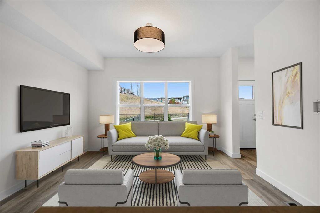 Welcome to the NEWLY BUILT #1206, 525 RIVER HEIGHTS DRIVE, a beautiful townhome that includes a NEW HOME WARRANTY and could offer a GST REBATE FOR QUALIFIED BUYERS. Enjoy a LARGE FENCED BACKYARD backing WEST that provides the feel of a single-family home. Step inside to a bright, airy main floor featuring a MODERN OPEN-CONCEPT LAYOUT that is both stylish and functional. At the heart of the home is a SLEEK CONTEMPORARY KITCHEN with QUARTZ COUNTERTOPS, MATTE BLACK HARDWARE, WHIRLPOOL STAINLESS STEEL APPLIANCES, SOFT-CLOSE CABINETRY, and a CENTRAL ISLAND WITH SEATING, ideal for casual dining or entertaining. The kitchen flows seamlessly into the dining and living areas, where LARGE WINDOWS and LUXURY VINYL PLANK FLOORING create a bright and inviting atmosphere. A POWDER ROOM and a DEDICATED MUDROOM off the back entrance provide added convenience and organization for daily living. Upstairs, the SPACIOUS PRIMARY BEDROOM includes a WALK-IN CLOSET and a PRIVATE 3-PIECE ENSUITE. Two additional bedrooms offer flexible space for children, guests, or a home office. A FULL 4-PIECE BATHROOM and a CENTRALLY LOCATED LAUNDRY AREA make busy routines easier and more efficient. The UNFINISHED BASEMENT provides exciting potential for future development, additional storage, or a customized space that fits your lifestyle. Designed with comfort and sustainability in mind, the home includes DUAL-PANE WINDOWS, a HIGH-EFFICIENCY HVAC SYSTEM, and an HRV UNIT for consistent comfort and performance year-round. Outside, you can relax on your PRIVATE REAR PATIO or enjoy a quiet morning on the COVERED FRONT PORCH. Two ASSIGNED PARKING STALLS add convenience, and with LANDSCAPING AND SNOW REMOVAL INCLUDED, this property offers truly LOW-MAINTENANCE LIVING. Located in the well-established community of RIVERSONG, you are just minutes from SCHOOLS, SCENIC WALKING PATHS, PARKS, CO-OP and the SPRAY LAKE SAWMILLS FAMILY SPORTS CENTRE. QUICK ACCESS TO HIGHWAY 1 and 22 makes it easy to reach CALGARY or escape to the MOUNTAINS for a weekend getaway. With QUALITY FINISHES, a SMART LAYOUT, and a VIBRANT NEIGHBORHOOD, this home is designed for modern, comfortable living. CONTACT to view the home TODAY as this home is MOVE IN READY! The FREESTONE SHOWHOME AT 525 RIVER HEIGHTS DRIVE is open on WEEKENDS from 12 – 5pm!