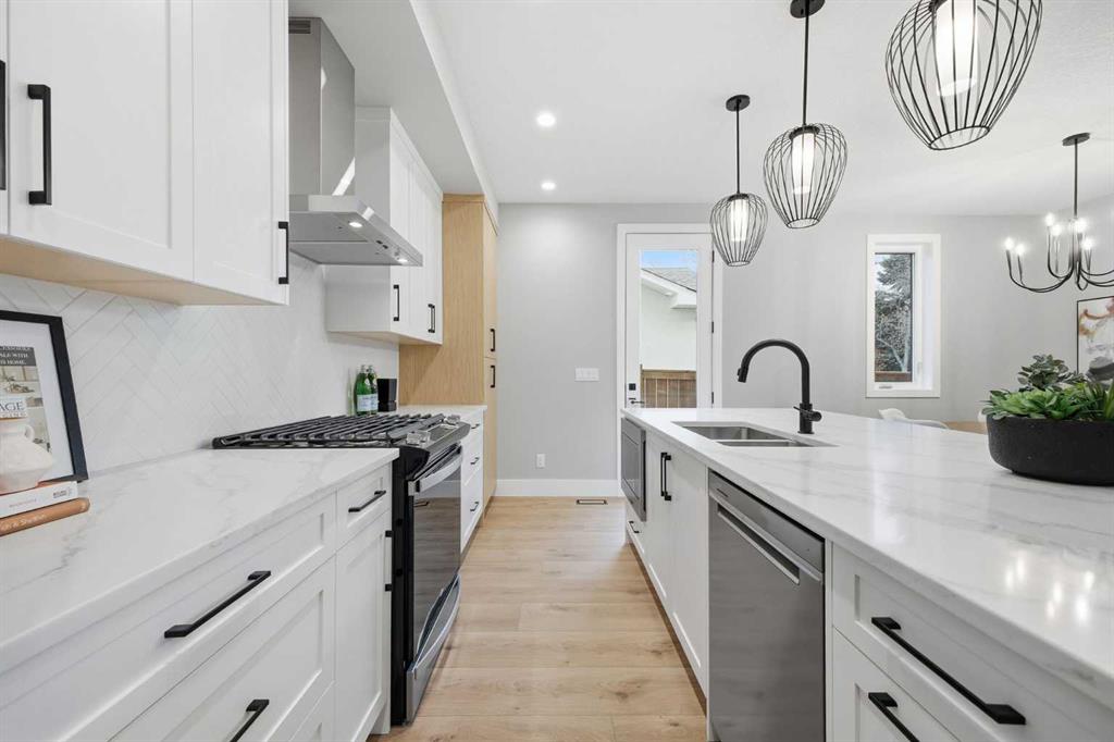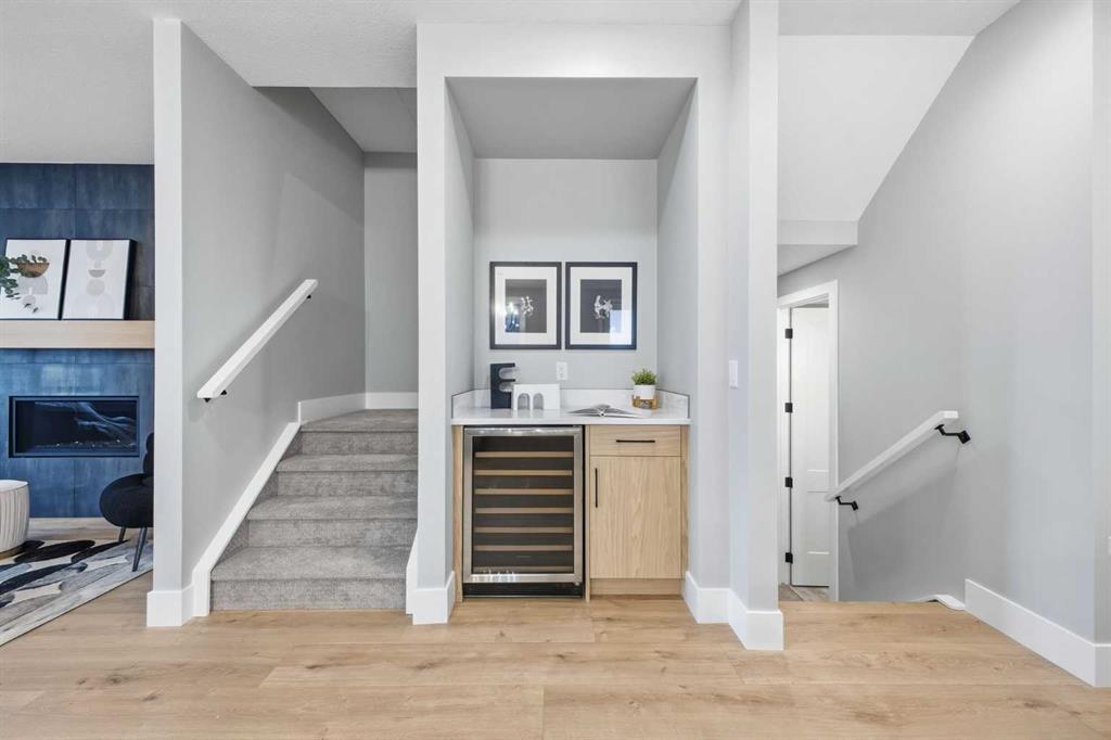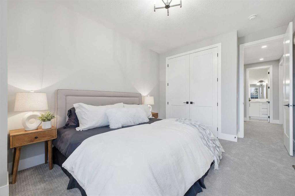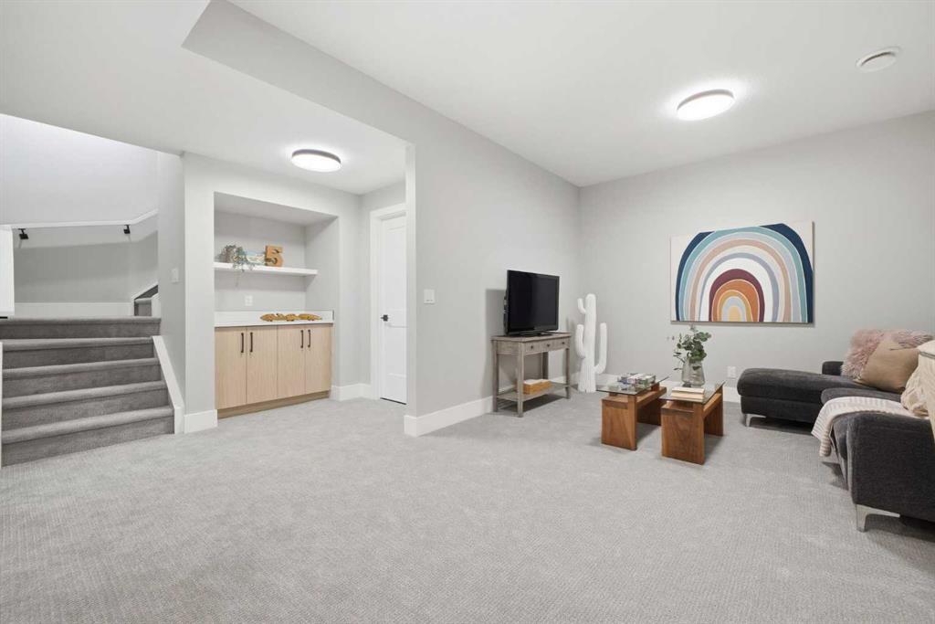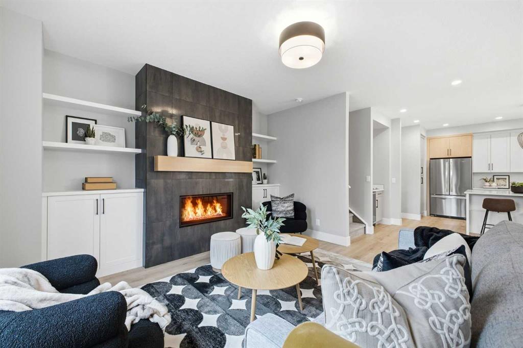 Beautifully designed and brand new, this 3+1 bedroom townhome built by Huber Homes in desirable Westgate offers nearly 2200 sq. ft. of developed living space with high-end finishes and modern comforts throughout! The open main level showcases, recessed lighting and a bright, airy floor plan. The kitchen is a true highlight, featuring a central island with eating bar, contrasting cabinetry, stainless steel appliances and a stylish dry bar. A spacious dining area and inviting living room with gas fireplace complete the main floor — the perfect layout for everyday living and entertaining alike. Upstairs you’ll find 3 comfortable bedrooms, including a relaxing primary retreat with walk-in closet and spa-inspired ensuite with double sinks and contemporary finishes. Two good sized bedrooms, a full bath and conveniently located laundry room complete this level. The fully finished basement extends your living space with a generous family/media room, a fourth bedroom and a full bath — ideal for guests, teens or a home office setup. Additional highlights include a front deck with BBQ gas line, a single detached garage, and thoughtful design inside and out. Located just steps from schools, shopping, parks and transit, this home combines style, function and location in one of Calgary’s sought-after southwest communities.